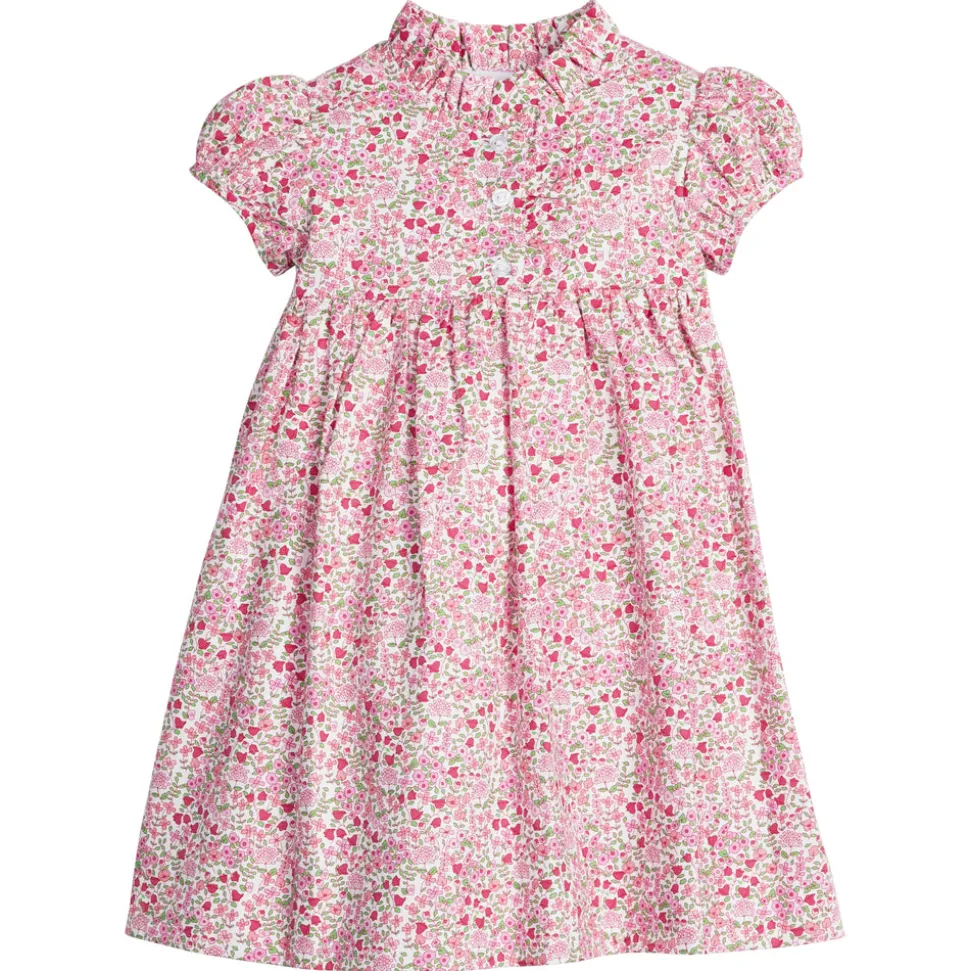 Shannon Latham founded Little English in 2004 with the belief that children should always be well-dressed. Employing hand-smocking, hand-embroidery, and the very best fabrics, Shannon and her daughter design timeless pieces that will be worn for generations to come. Fairfax is a new pink floral printed on twill, crafted from a mid-weight fabric ideal for fall with the right balance of structure and softness. The Birdie Dress is a classic Little English style featuring capped sleeves and a ruffled placket. Layer with the Essential Cardigan in White as the weather cools, and coordinate with the matching Birdie Bubble for baby sister.