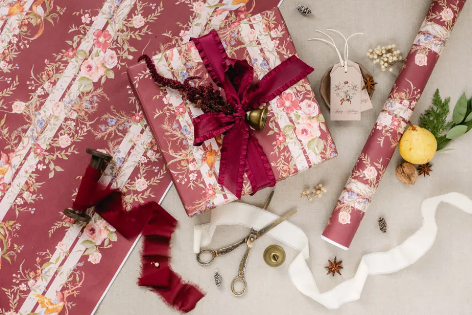 Imbued with romantic imagery and sumptuous patterns, Nadia & Co. creates beautiful products that turn little moments into decadent memories. Toronto-based artist and tastemaker, Nadia Colella, has perfected her craft with over fifteen years of industry experience. The Birds in Bloom print features English inspired bouquets of florals, beautifully balanced with birds and set against a double stripe background.