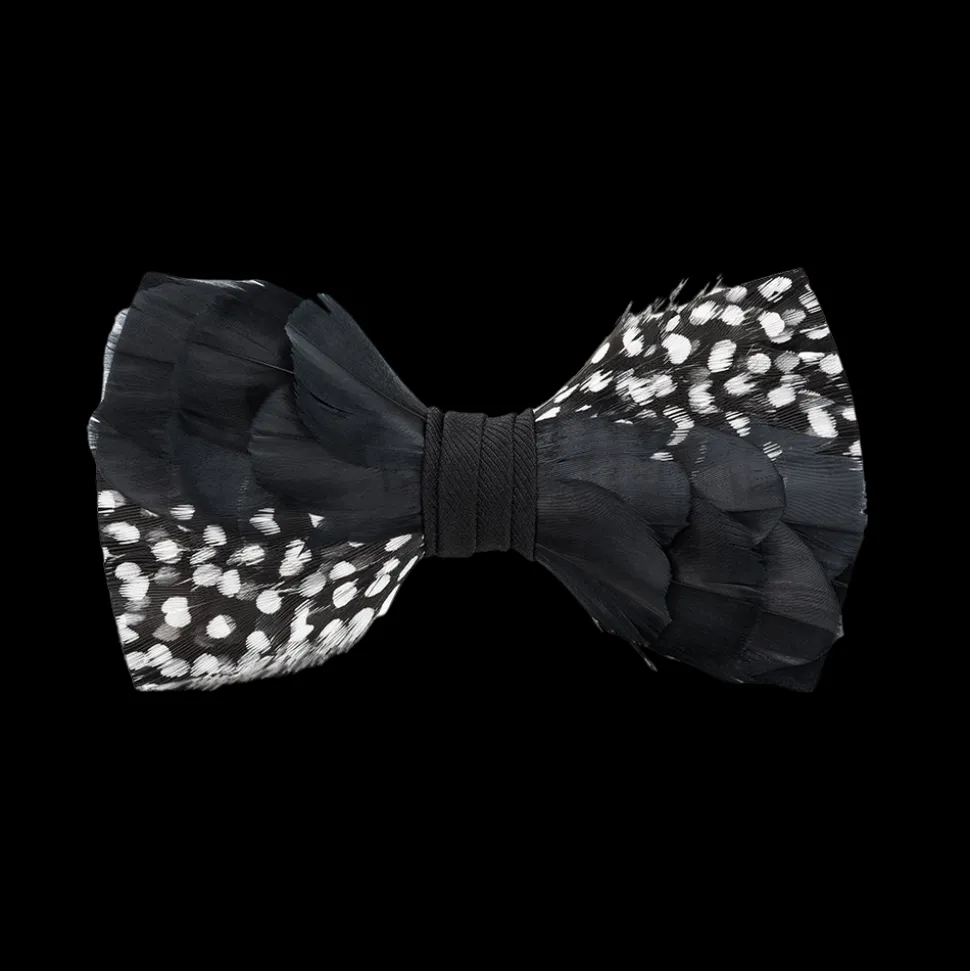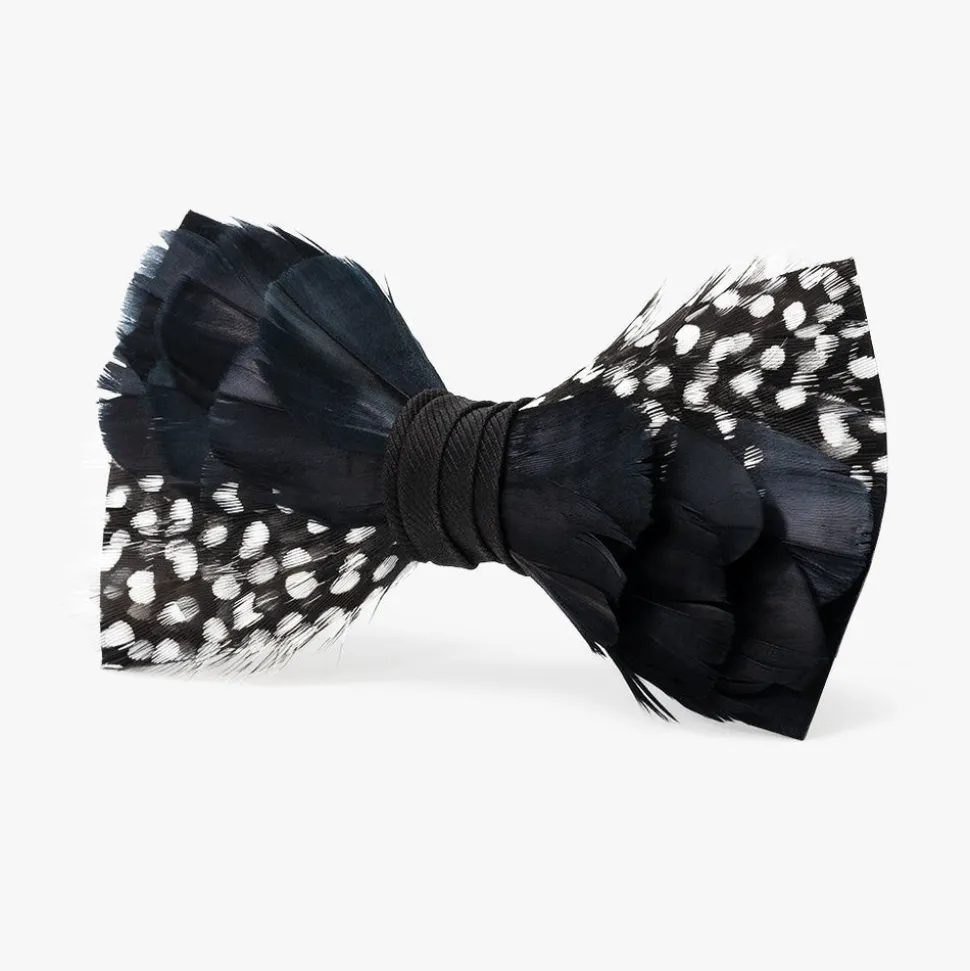 Brackish began with one feather bow tie designed by Ben Ross and gifted to his groomsman, Jeff Plotner. Since its inception, the brand has blossomed into a full line of men’s and women’s accessories designed and handcrafted in Charleston, South Carolina with each piece focused on honoring the beauty found in nature. The Bisbee Bow Tie is a modern twist on the classic, black and white style. Its asymmetrical design, crafted with guinea and goose feathers, boasts a fluffy texture that exudes elegance with a playful touch, making this tie a statement with stand out flair.