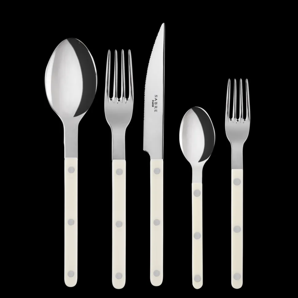 The Sabre Paris Bistrot Place Setting is wonderfully versatile, equally at home on traditional and contemporary table settings. The slender, riveted acrylic handle is at once sleek and timeless. This 5-piece set includes a dinner knife, dinner fork, soup spoon, salad fork, and teaspoon.
