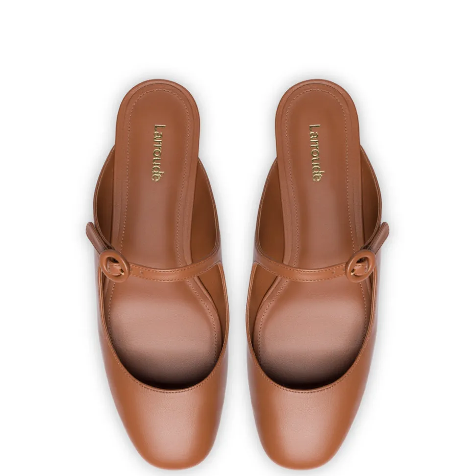 Bold colors, playful patterns, and chic silhouettes are hallmarks of Larroudé, a shoe brand born of the pandemic from industry veterans and husband-and-wife team Marina and Ricardo Larroudé. Manufactured in Brazil, Larroudé shoes are designed with the consumer and community in mind, never compromising on style, fit, and quality. Crafted in materials gold-certified by the Leather Working Group, wearing this luxury footwear brand allows you to feel as good as you look. With the Blair Flat Mule in Caramel Leather, an adorable mary jane arrives in a new mule shape for the warmer weather. Here it’s in a rich shade of leather.