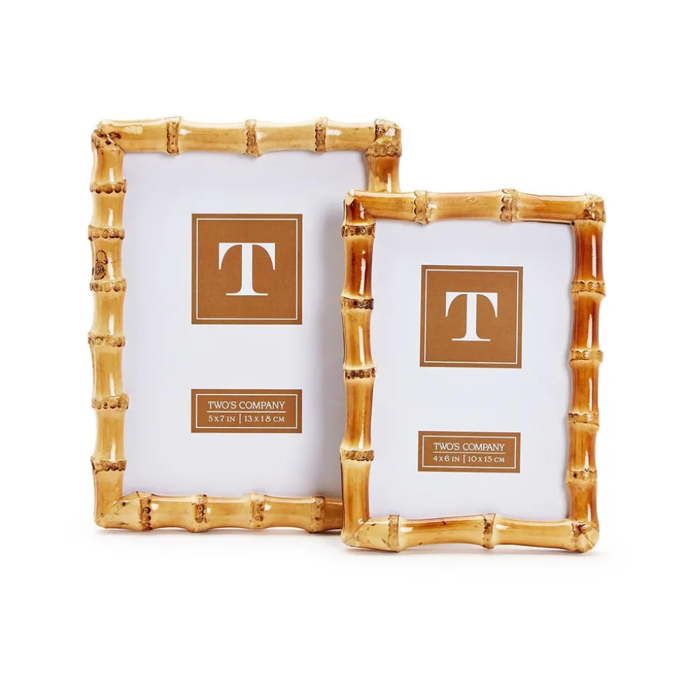 Started in a couple’s Westchester home in 1969, Two’s Company is a single destination for a wide range of stylish contemporary gifts, homewares, and accessories. From chinoiserie dish collections to accents for the sofa, the brand’s offerings are once sophisticated and accessible, making it an ideal gifting source for weddings, babies, new homes, birthdays, and more. The Blonde Bamboo Photo Frame, Set of 2 are crafted in natural materials, which include variations of thickness and coloration. An elegant and sophisticated home for your most treasured moments, loved ones, and memories.
