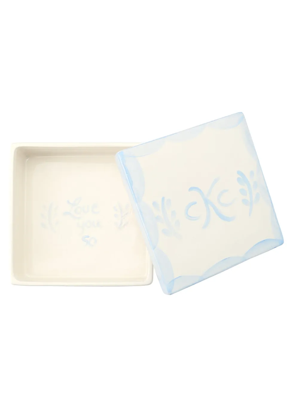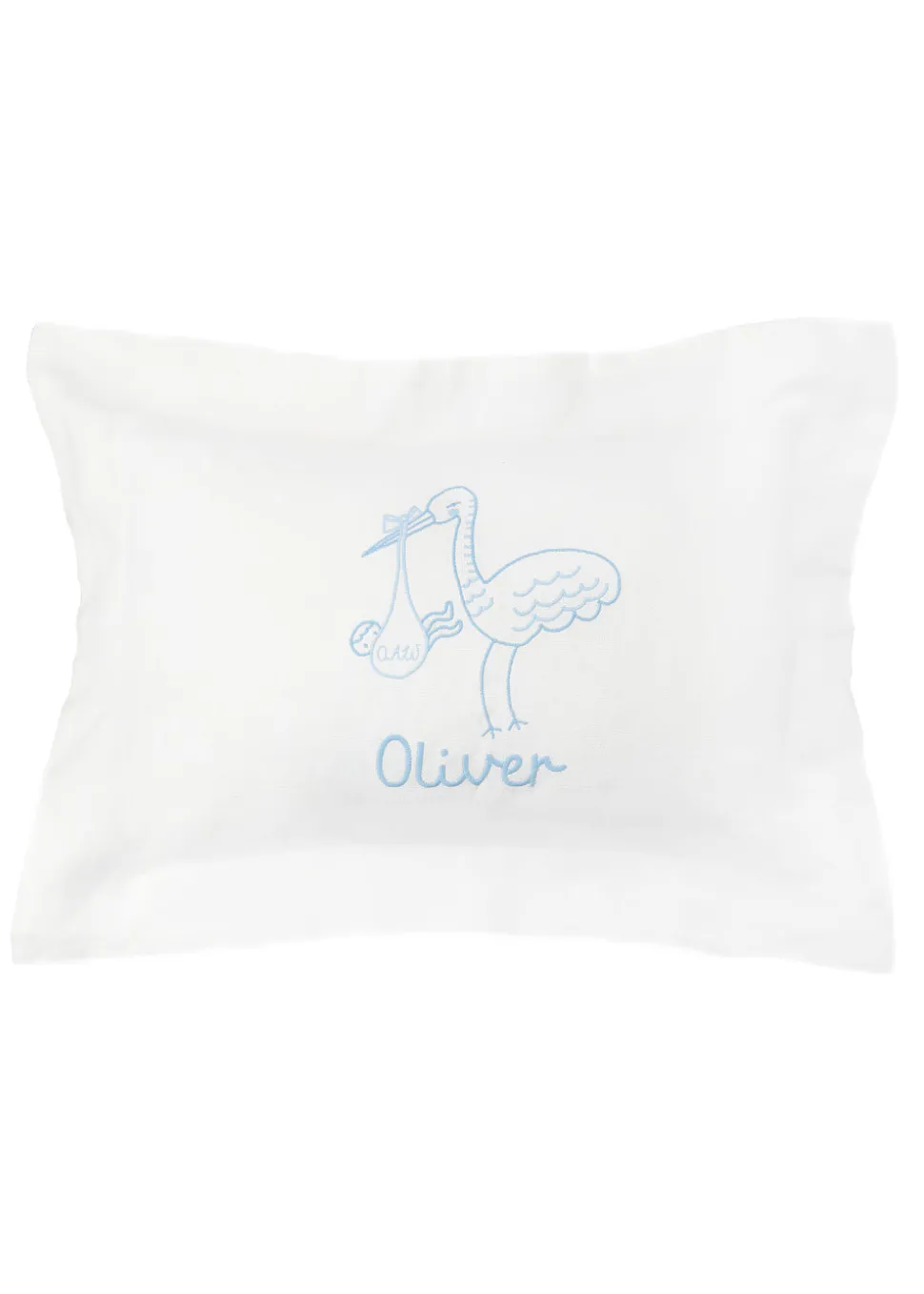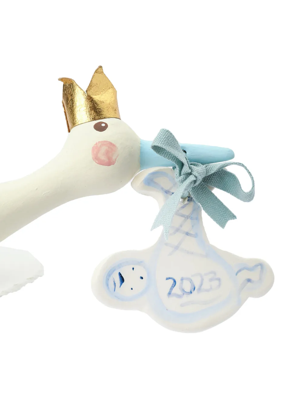 Self-taught artist Tricia Lowenfield crafts one-of-a-kind whimsical pieces that will become family treasures in time. Entirely handmade, the Blue Baby Bundle is the ultimate gift for a little one. Inside, you will find a hand-embroidered pillow, personalized stork Christmas ornament, hand-painted chair, monogrammed trinket box, and, lastly, a hand-painted picture frame.