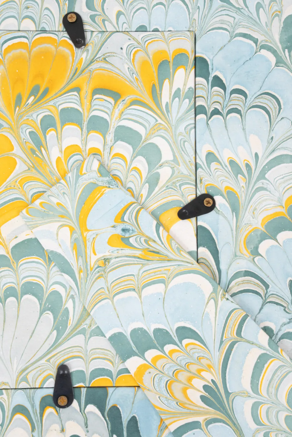 100% recycled cotton. Handmade paper. Tree-free gifting. Handcrafted by artisans in India, using traditional techniques of hand marbling. Wall hanging attachment on the back of this frame for dual use.