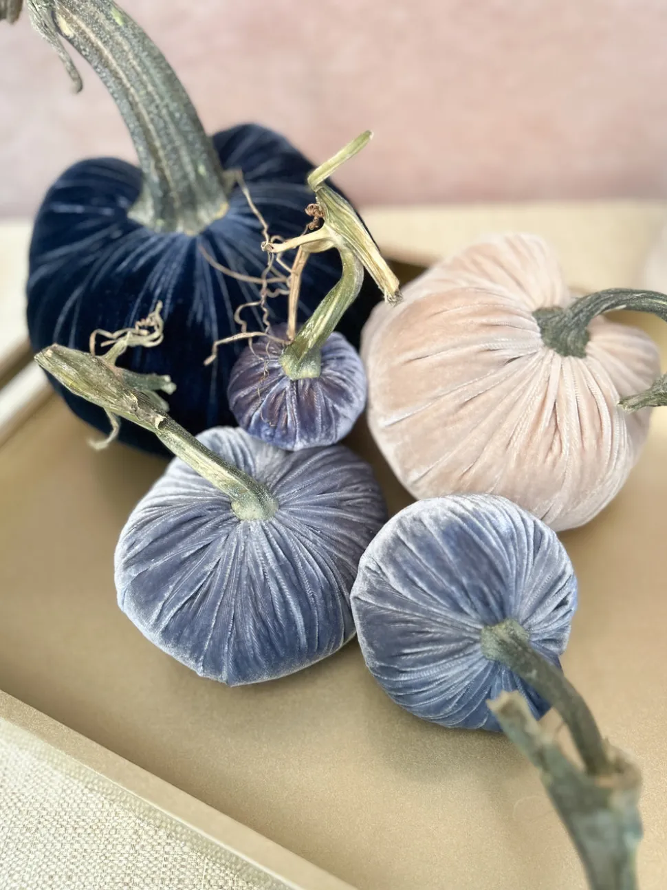What started as a craft side business by founder Daria Knowles has blossomed into a downright covetable collection of meticulously handcrafted decor pieces made by a team of trained artisans that showcase a touch of nature’s beauty and charm. Enhance your fall tablescape and festive moments with these chic silk velvet pumpkins, ranging in warm colors from sapphire to bone, cut and sewn to order, finished with a natural stem.