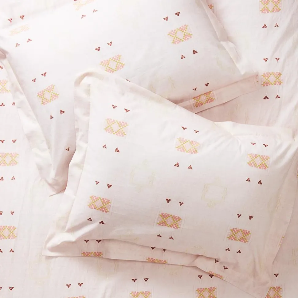 Inspired by St. Frank’s vintage cactus silk textiles, this sheet set symbols mimics traditional tattoos that adorn the Berber women in North Africa. They have many meanings, such as longevity, fertility, protection against the evil eye, cures for illnesses, tribal association, and marital status.