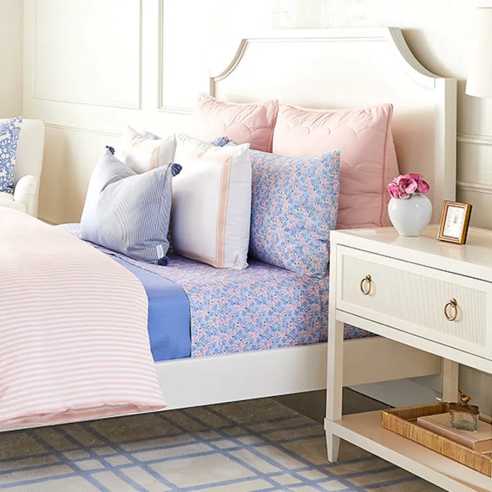 Founded on timeless design principles, Caitlin Wilson Design blends sophistication and uniqueness, embracing a variety of styles. The brand features textiles ranging from antique-inspired Persian rugs to custom pillows, wallpaper, lighting, furniture, and more. With a focus on pattern and color, Caitlin Wilson Design creates distinctive, signature interiors that bring out the full potential of every space. The Blush Scallop Shame with delicate stitching detail will set the tone for a space a girl can grow with. Easy to pair with any of the Cait Kids florals and patterns.