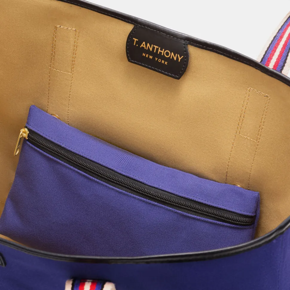 Founded in 1948, T. Anthony is an iconic American luxury luggage and leather goods brand, renowned for its exceptional craftsmanship and timeless design. Committed to ethical production, the brand blends classic elegance with durability, offering versatile pieces that are made to last and be passed down. The roomy canvas and leather Boating Tote is ideal for towel, books, and all of your beach essentials. Made for the beach but also an excellent everyday bag. Additionally, it features an interior snap out pouch.