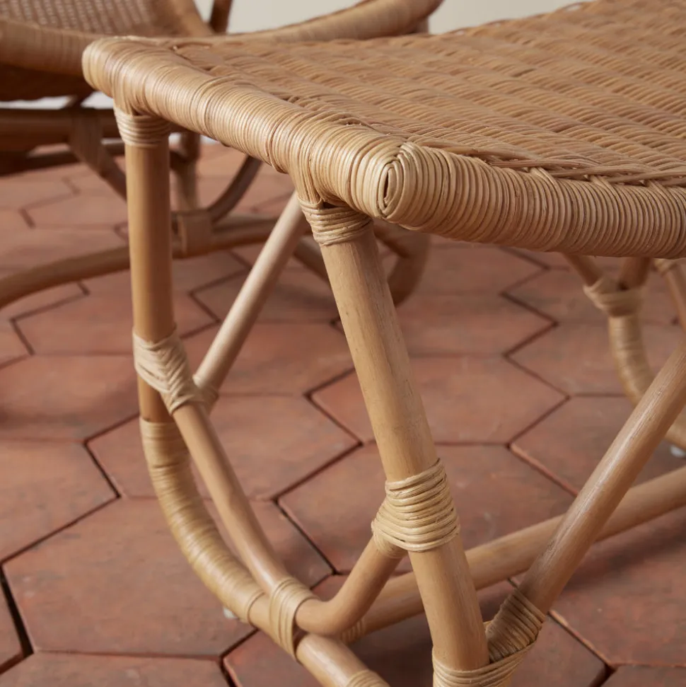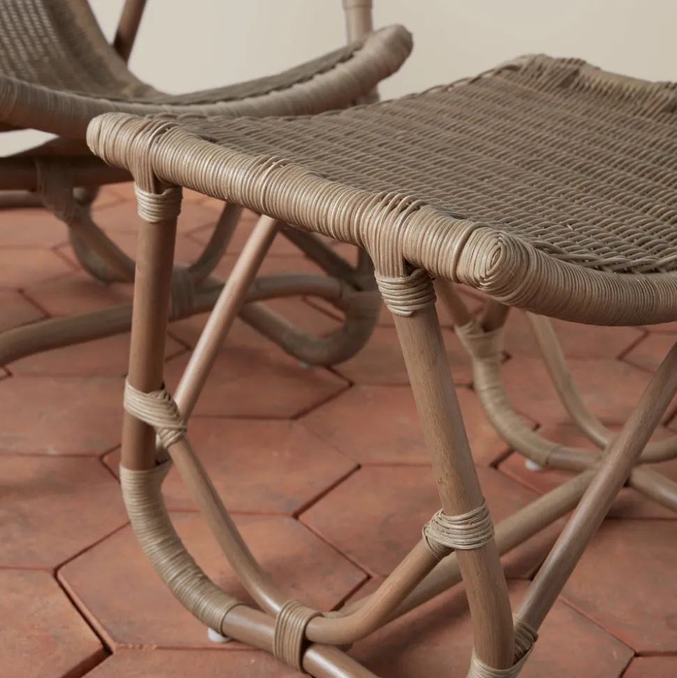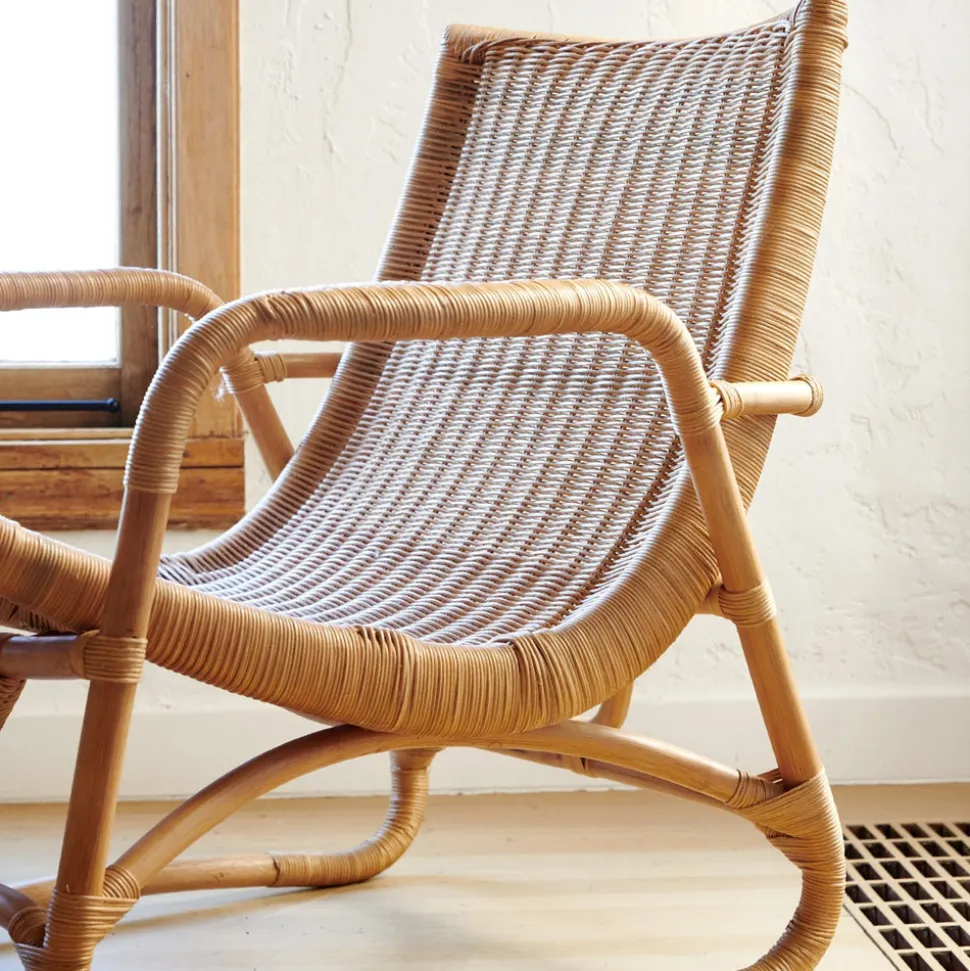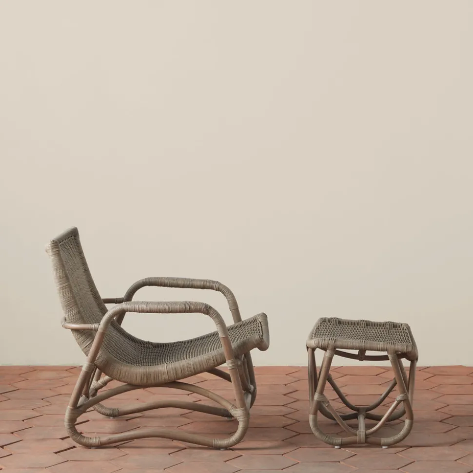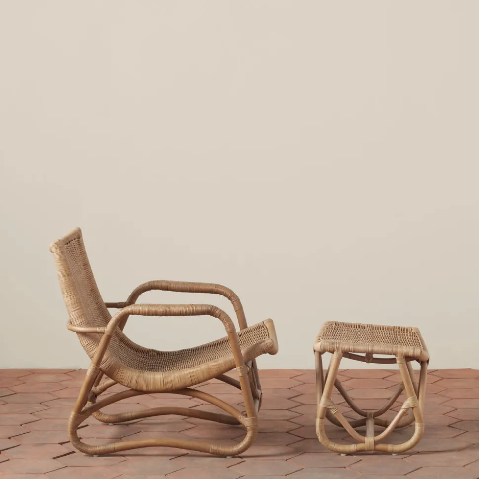 At once beautiful and timeless, Woven designs mindfully designed pieces for your home and beyond. Woven invites you to create spaces that are layered and natural—an expression of you. Inspired by cottage living and Scandinavian design, the low-profile Bodega Wicker Lounge Chair and ottoman pair well with a crackling fire or a shaft of afternoon sun and a good book, of course. Finish with a shearling or a throw pillow and sink in. Expertly steamed and woven by hand from Indonesian rattan. Chair and ottoman sold as a set.