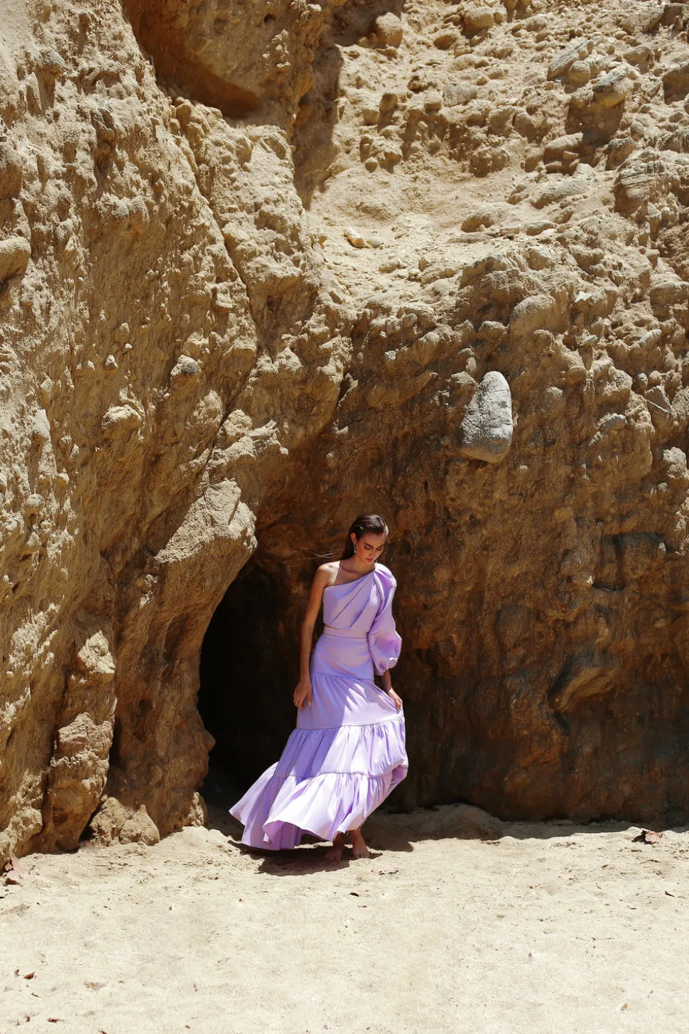 Founded by Daniela Panaro, No Pise La Grama, which translates to “don’t step on the grass,” is a Venezuelan fashion brand known for its feminine, timeless designs. As the name suggests, there’s a strong connection to nature through the elevated yet laid-back aesthetic inspired by travel and the art of traditional craftsmanship. The Bom Bom Top in Lavender channels playful charm through soft structure and romantic color. Whether styled with its matching skirt or worn with crisp tailoring, this cropped silhouette adds a fresh, feminine touch to any summer wardrobe.