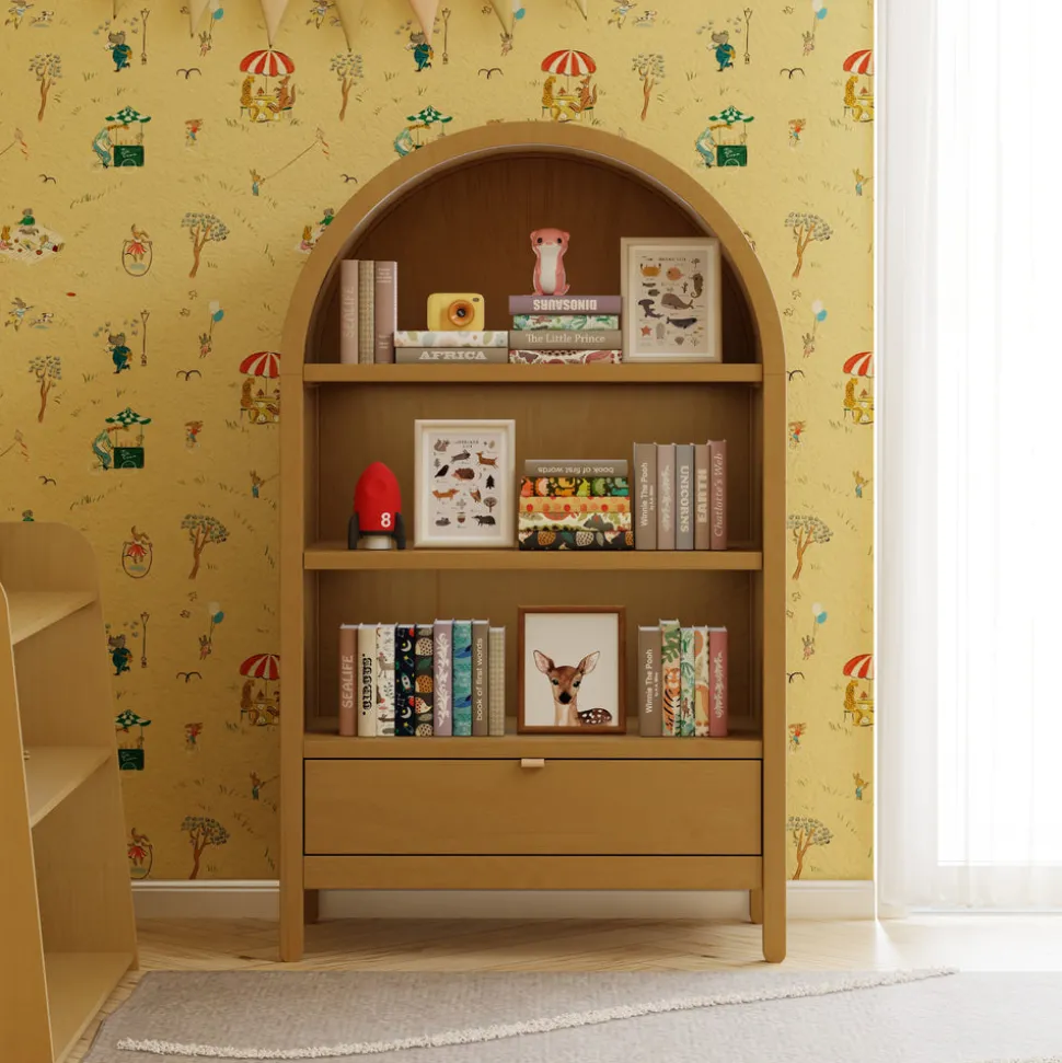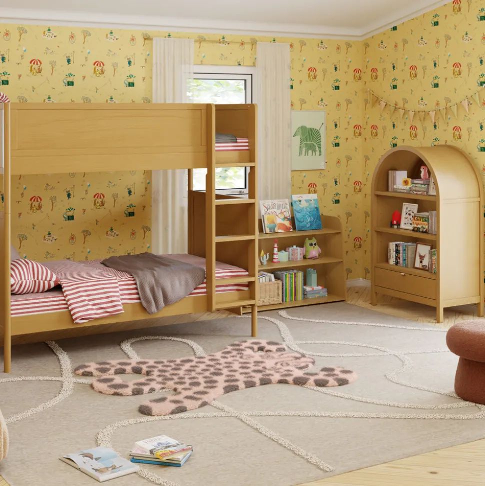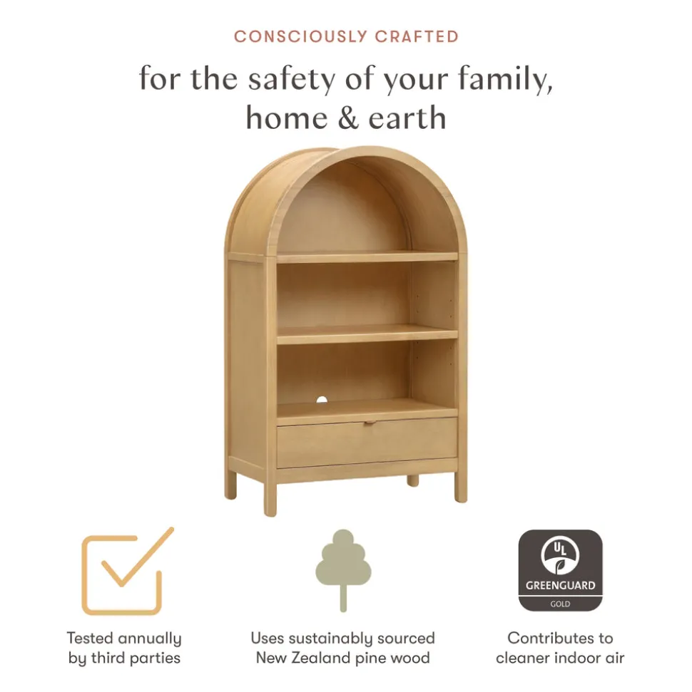 Designed in Los Angeles, babyletto creates stylish, modern nursery furniture and essentials with a focus on safety, sustainability, and intuitive design. For over a decade, the brand has empowered parents to craft spaces that reflect their values and individuality. The Bondi Assembled Bookcase in Honey blends boho charm with practical design, offering open storage and warm, natural character for any space.
