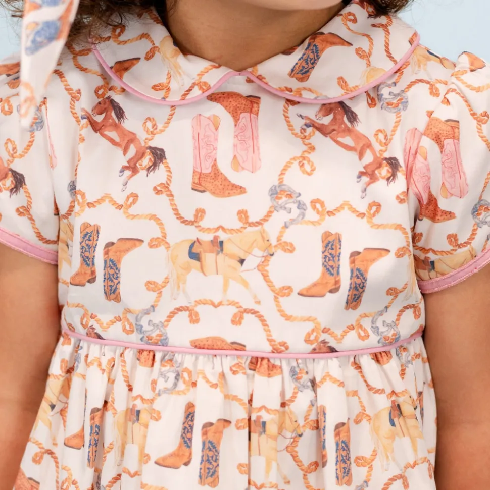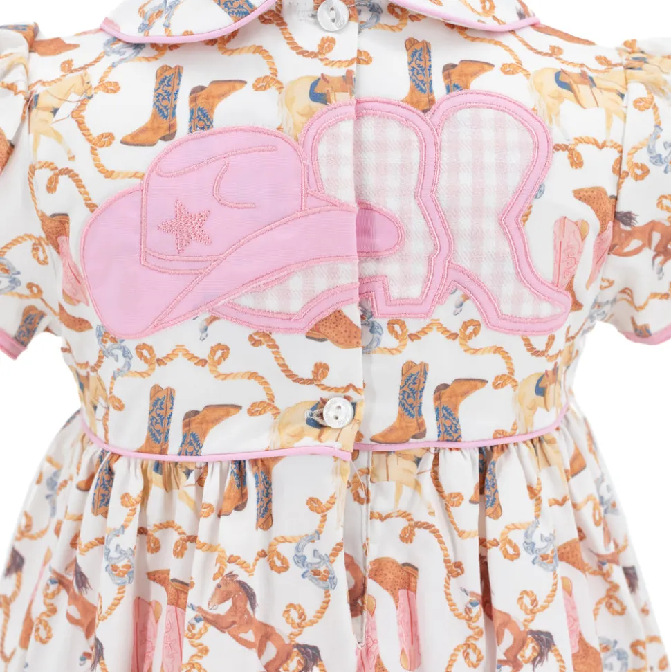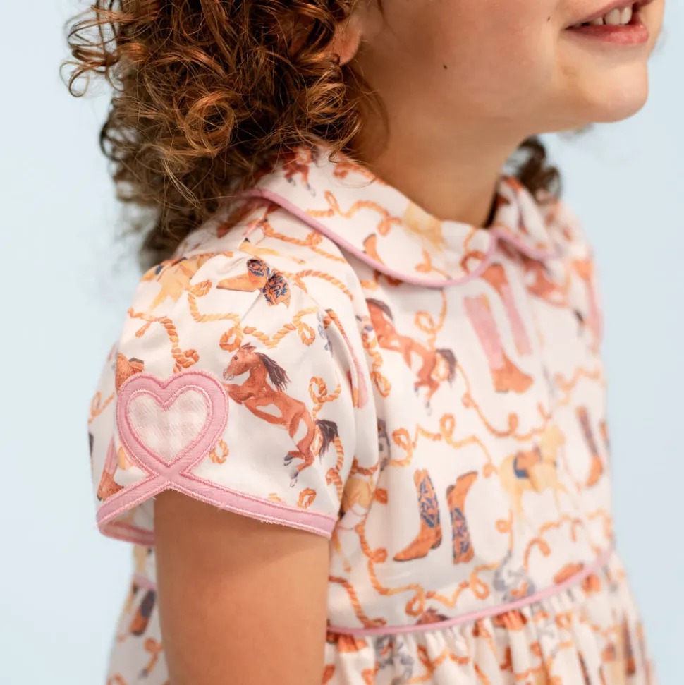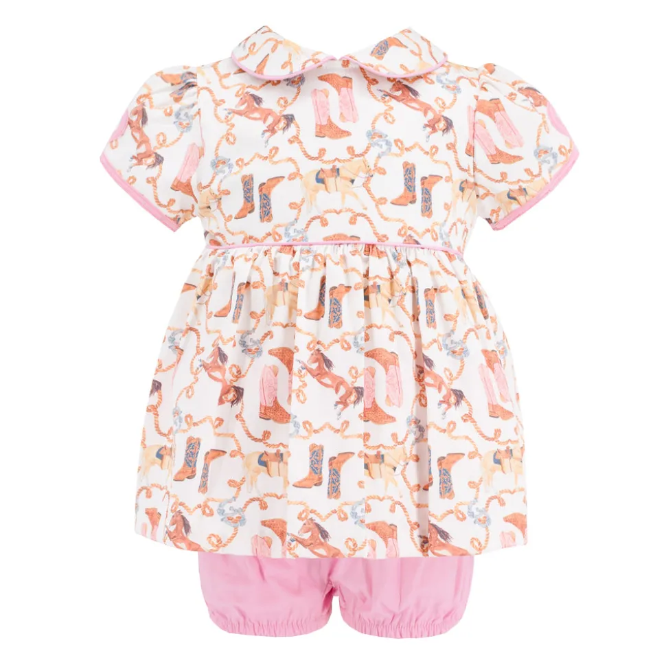Inspired by the beauty of motherhood, Dondolo is a luxury lifestyle brand that provides beautiful, heirloom-quality clothing for generations to come. Each design is thoughtfully crafted in Colombia with ethical manufacturing, making every piece even more special. The Bonnie Girl Set is a playful nod to country charm, designed for little cowgirls who love to explore in style. This two-piece ensemble pairs a dainty embroidered top with pink gingham shorts, blending softness with spirited detailing. Heart-embroidered sleeves, pink piping at the chest, and an appliqué of boots and a hat on the back make this set a standout choice for sunny days and memory-making moments.