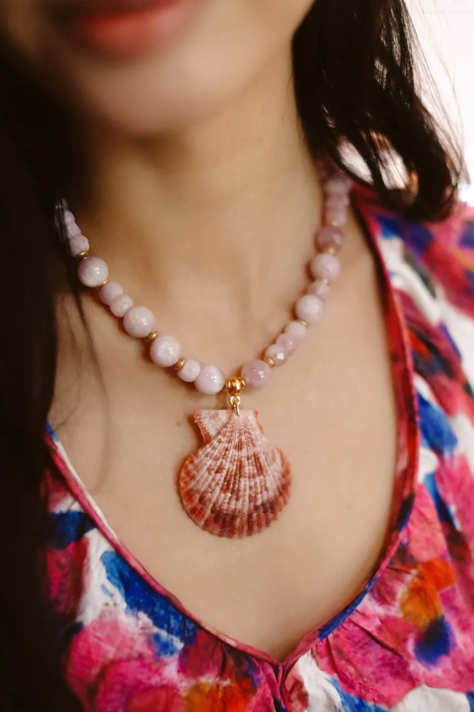 Hand-made. 24K antique gold-plated chain. Adjustable. Hook closure. 14/20K gold-filled hook and chain ending. Please note that no two semi-precious gemstones or natural shells are exactly the same; they range slightly in color, detailing and size due to being natural materials. Each shell has its own unique markings and there will be slight variations due to the individuality of each piece.