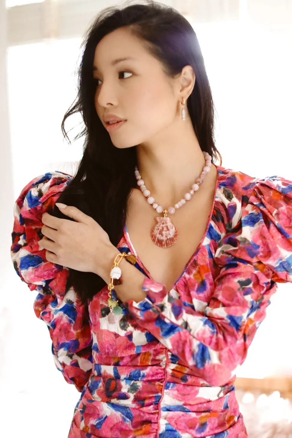 The mother-daughter duo behind Brinker + Eliza combine their experience in metalsmithing and fashion to create incredibly unique jewelry that feels custom-made. Employing pearls, shells, and earth’s most prized organic forms, these are pieces to be not just worn but treasured. The Bora Bora Necklace brings the beaches of the Pacific Ocean straight to your jewelry box. A strand of Kunzite semi-precious gemstone beads and 24K antique gold-plated slices surround a genuine Pecten Shell for the ultimate beach-inspired look.