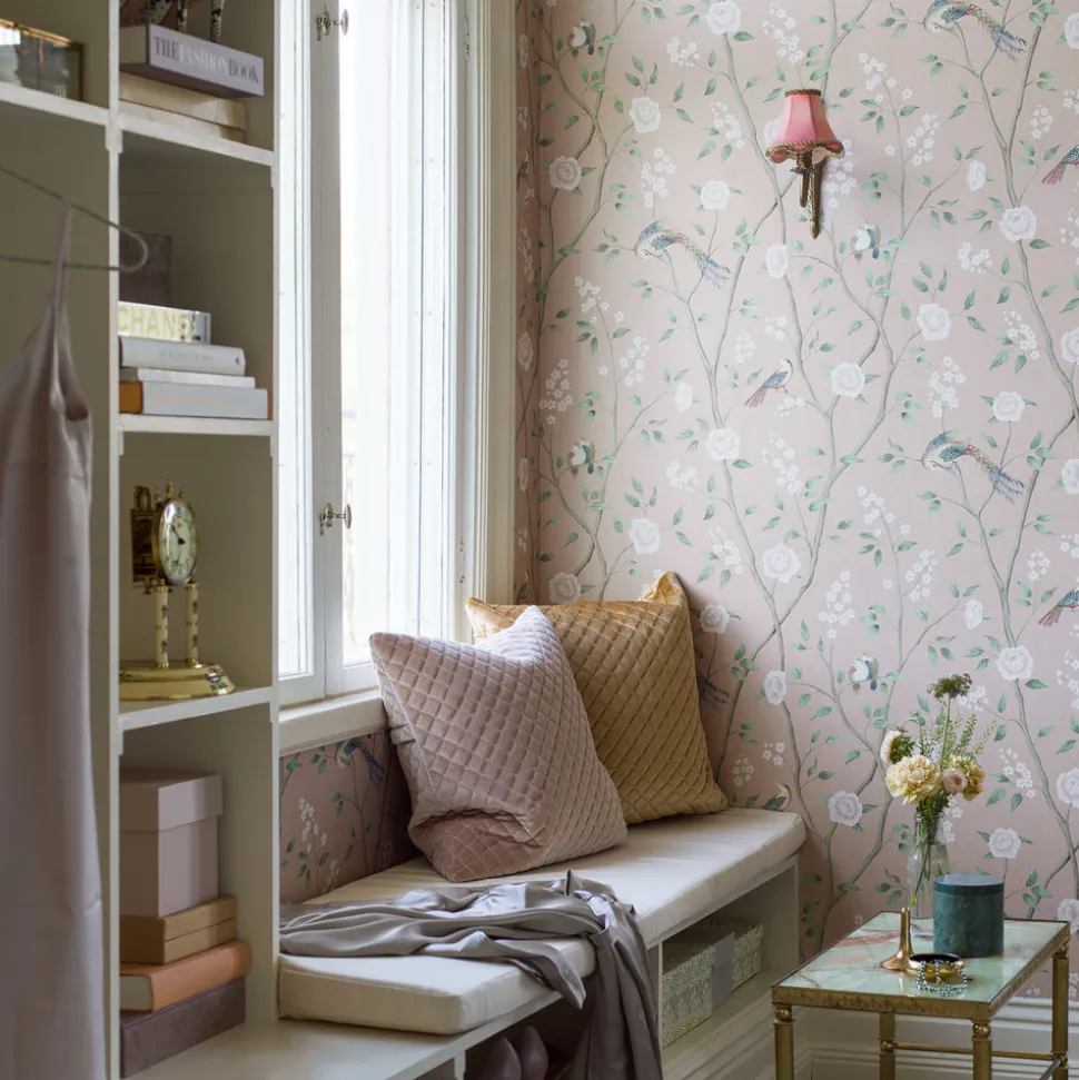 Founded by Frederic Schumacher in 1889 on Fifth Avenue in New York, Schumacher design transcend trends and time with generations-tested unwavering devotion to beauty and quality. Their luxury pillows, fabric, wallpaper, trim, and furniture allow decorators and shoppers alike to create with total confidence. Inspired by 18th-century, hand-painted Chinese wallpapers, the Boråstapeter Paradise Birds Wallpaper is a poetic rendering with just the slightest shimmer for a gentle dose of glamour.