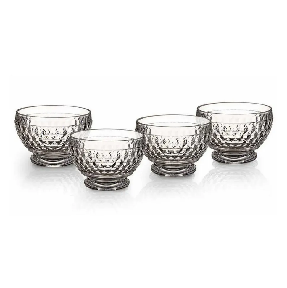 With over 275 years of heritage, this family-owned brand has become a global symbol of refined European living. Blending time-honored craftsmanship with forward-thinking design, Villeroy & Boch elevates everyday moments with beauty, quality, and enduring style. The Boston Individual Bowl in Clear, Set of 4 includes faceted glass bowls, ideal for serving snacks, fruit, or desserts with timeless elegance and versatility.