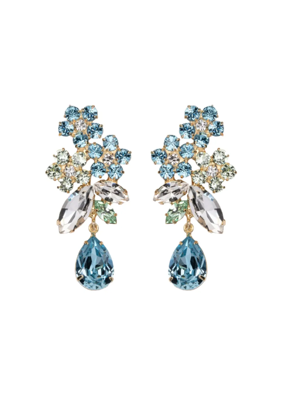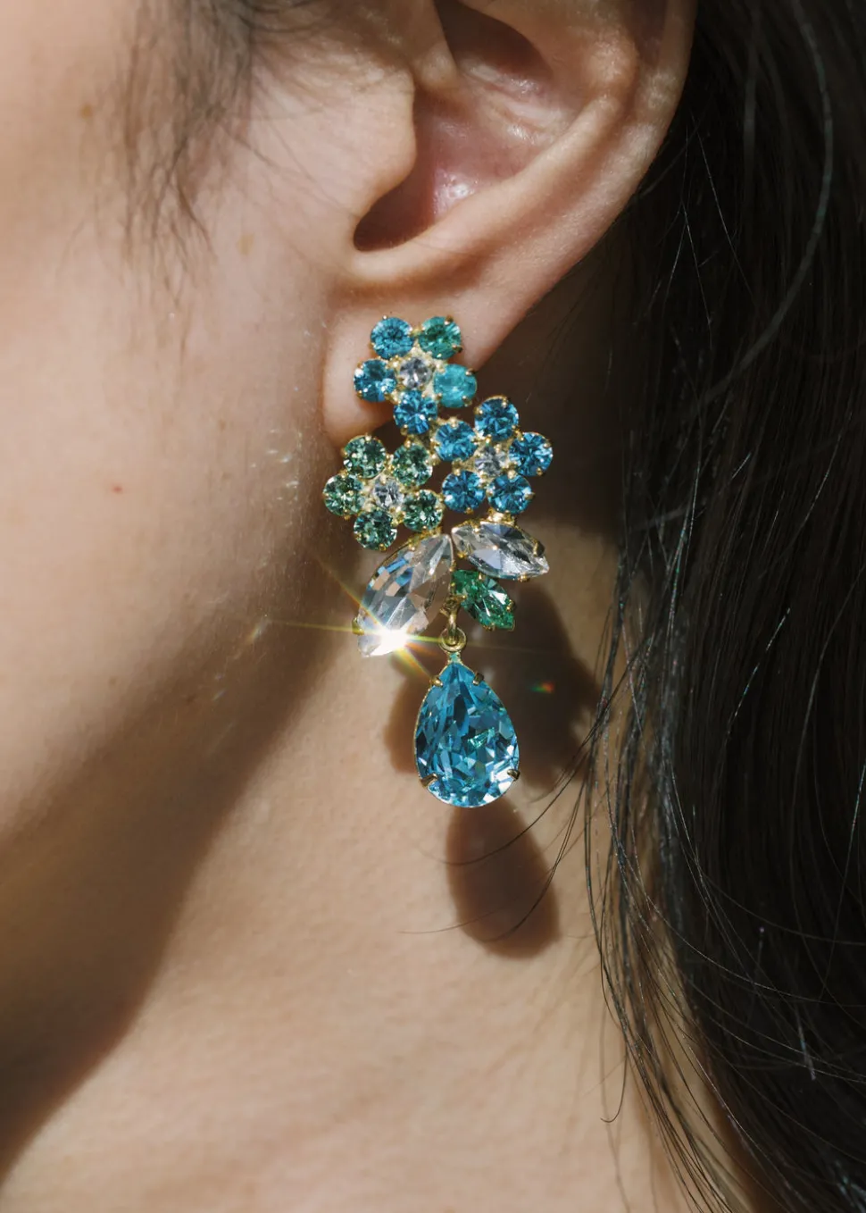 “Everything has a story to tell,” says Jennifer Behr, the founder of her namesake luxury hair accessory brand that has blossomed into one of New York City’s foremost ateliers for jewelry, as well as bridal. In every crystal, pearl, and ribbon, you’ll find the utmost quality and a sense of romance, as each piece reveals a modern interpretation of centuries-old regalia. The aptly-named Bouquet Earrings in Bluebell are wearable floral arrangements, offering a welcome dose of irreverent glamour. Each bouquet is assembled of fine crystals in a variety of cuts and shapes, creating a spectacular feast for the eyes. Interesting yet compact, they are perfectly sized to incorporate into any look