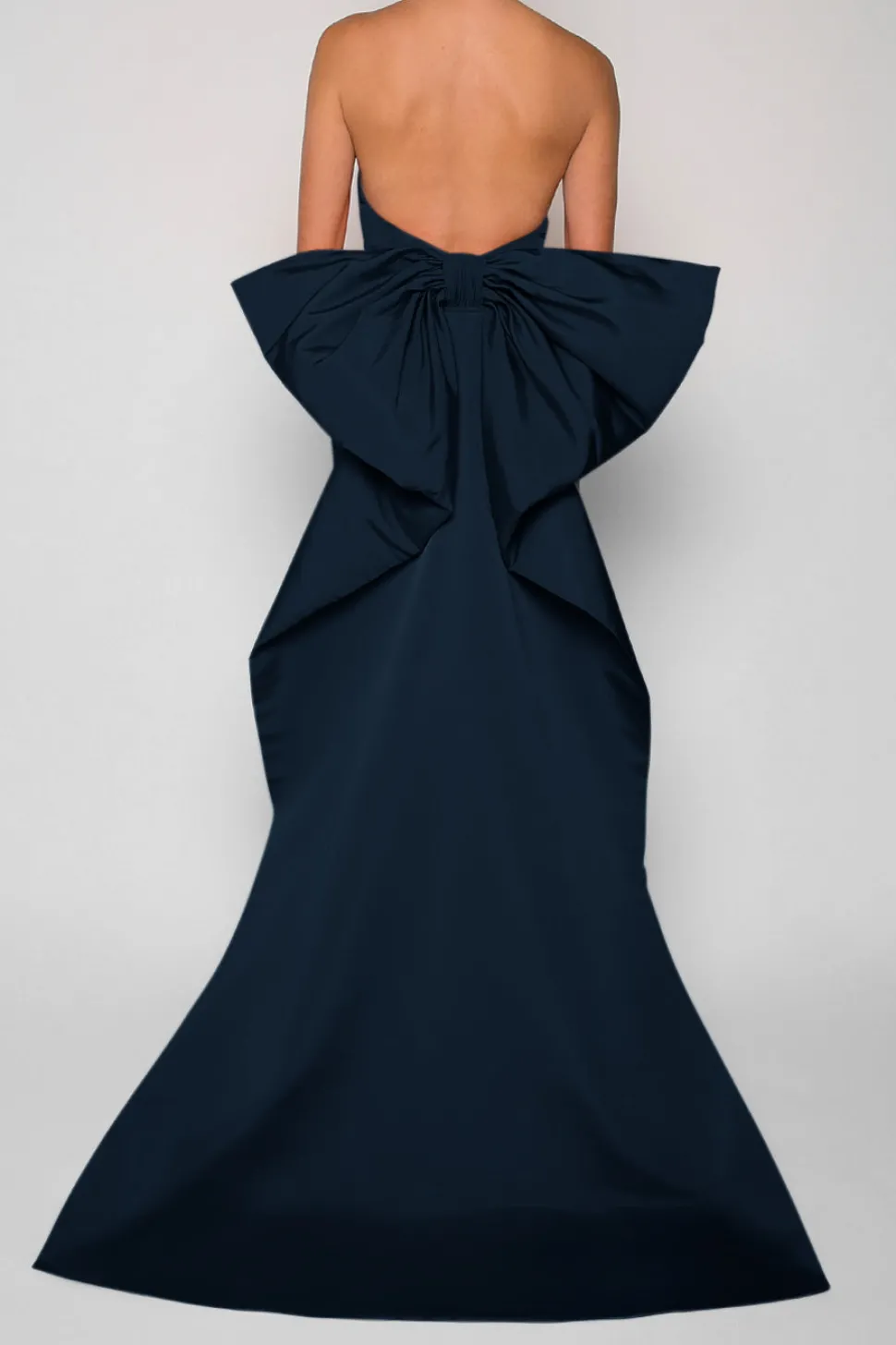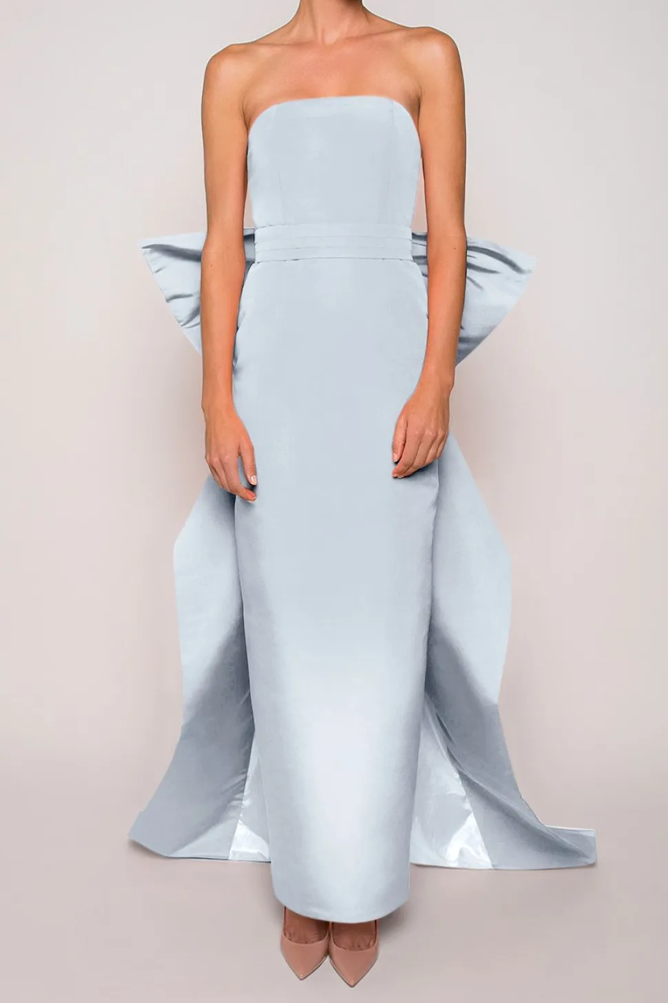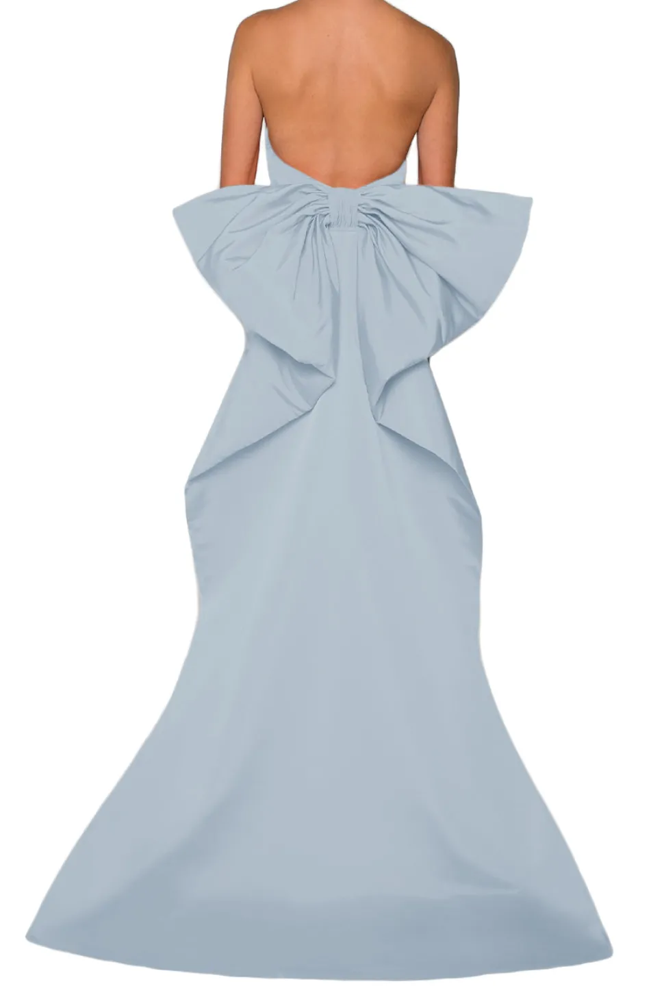 Alexia María is a luxury evening wear brand founded by Alexia María Esquer in 2014. Inspired by the golden age of film and fashion, the label romanticizes a classic era with the purpose of reigniting the art of dressing up. The Bow Butterfly Gown is a statement look with elegance through the roof. Its straight neckline, boned bodice, and detachable bow sash make this a dress to remember.