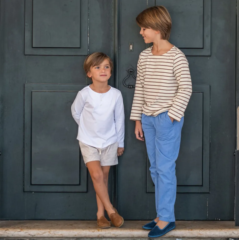 A family favorite for its clean lines and simple details, minnow creates pieces that are playful, polished, and thoughtfully designed for long days, sandy toes, and the wonderment of life on the shore. The Boys Brown Gingham Ultra-Soft Twill Short is the ultimate wardrobe staple. These shorts feature a stretchier, softer cotton, hitting at the ideal length that mimics the above-the-knee boardies. They are fully lined with an elastic waistband and a drawstring cord that provides mobility and ease. These are the go-to addition to your minnow collection.
