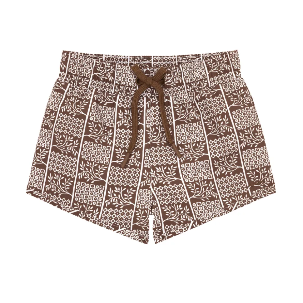 A family favorite for its clean lines and simple details, minnow creates pieces that are playful, polished, and thoughtfully designed for long days, sandy toes, and the wonderment of life on the shore. The Boys Checker Tree Boardie is the ideal length for style and function, featuring an exclusive print designed by artist Ellen Merchant. The new inside stretch liner adds to the comfort and mobility, with a drawstring cord and elastic waistband—ideal for any activity. Pair with a rashguard for all-day fun in the sun.