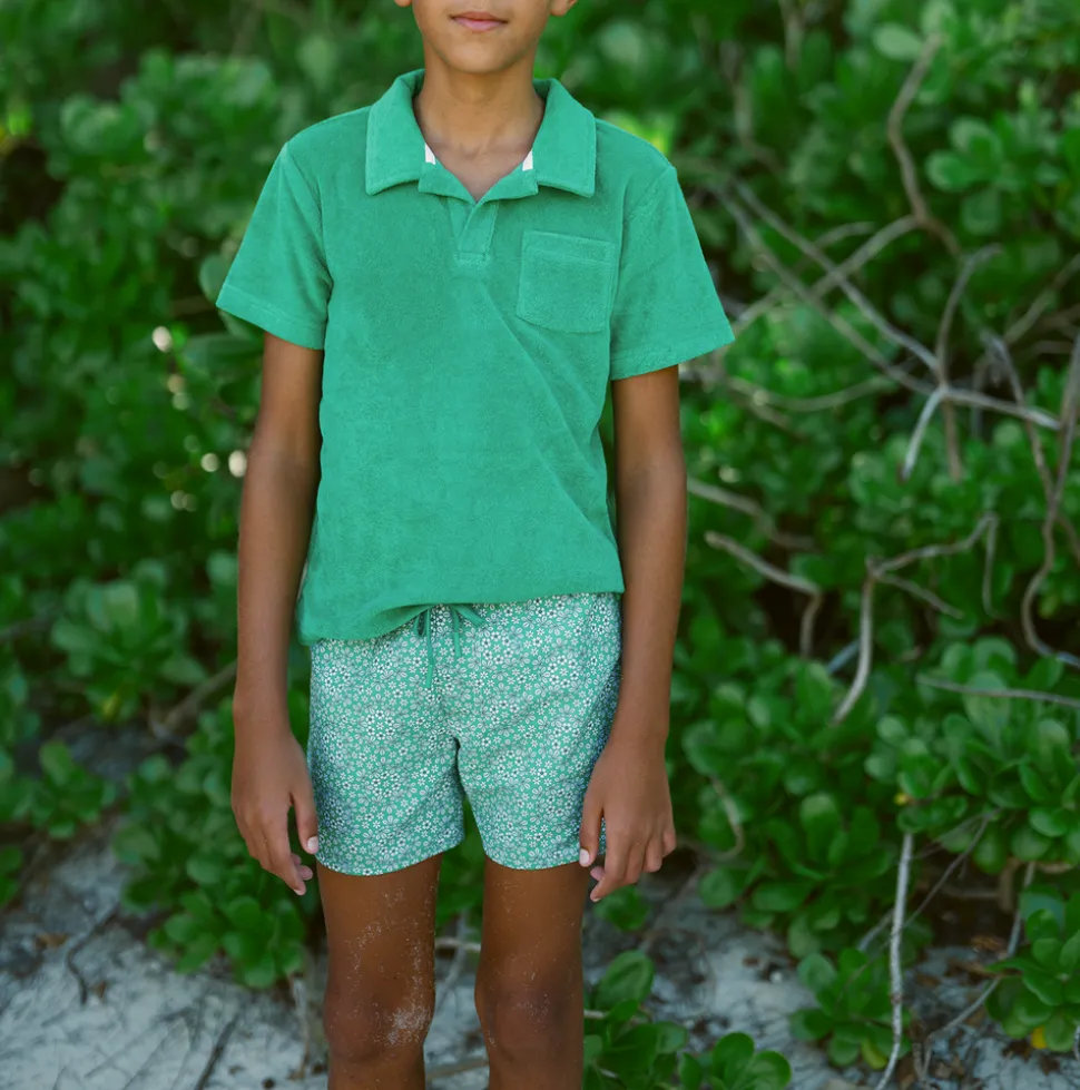 A family favorite for its clean lines and simple details, minnow creates pieces that are playful, polished, and thoughtfully designed for long days, sandy toes, and the wonderment of life on the shore. The Boys Godwin Boardie hits at the ideal length for style and function. Featuring a print made with Liberty fabric, the new inside stretch liner adds to the comfort and mobility, with a drawstring cord and elastic waistband—perfect for any activity. Pair with the UPF 50+ rashguard for all-day fun in the sun.