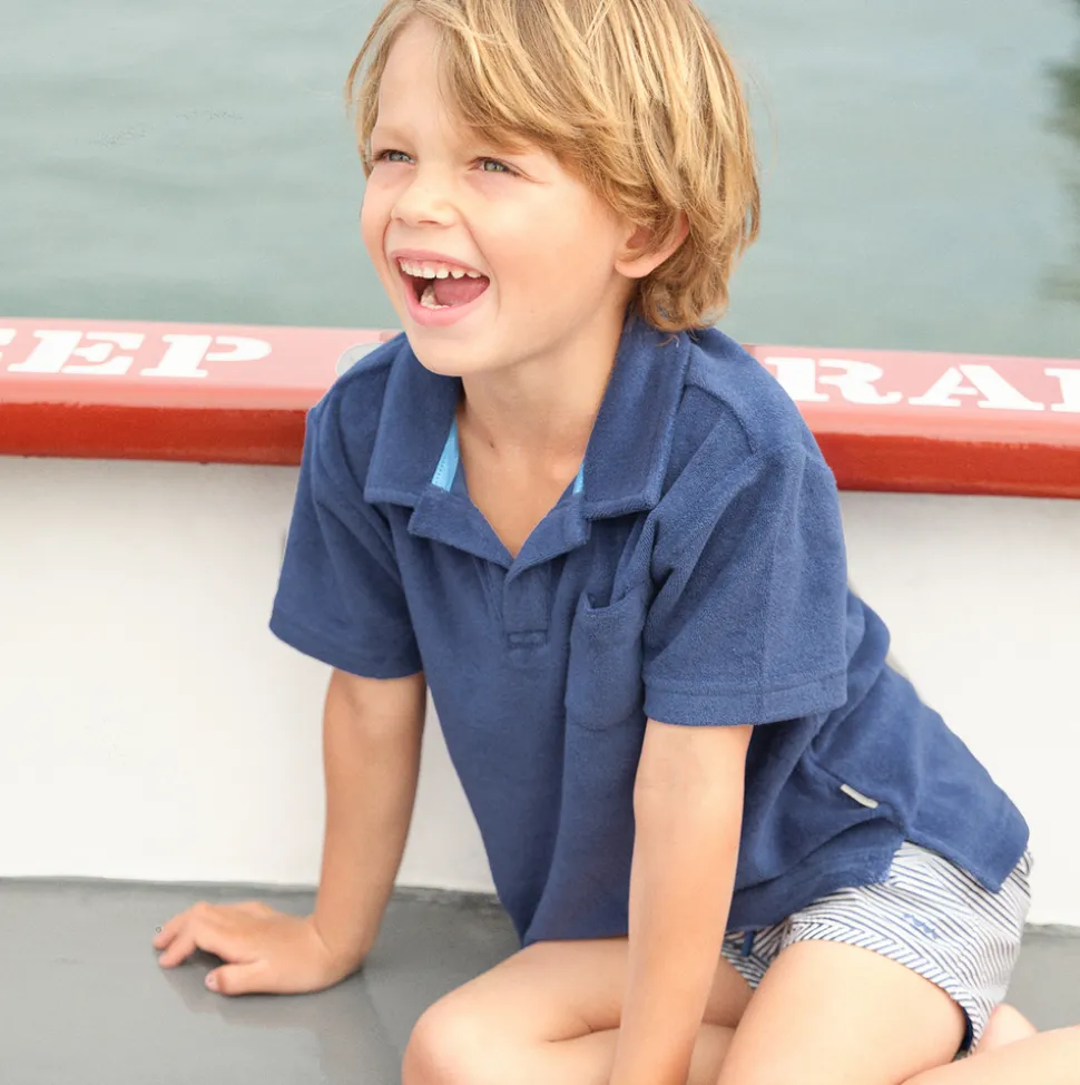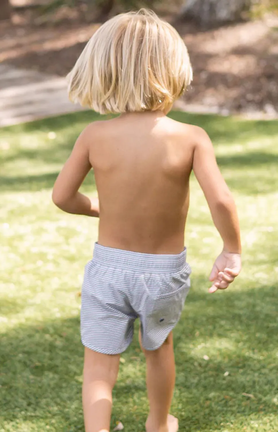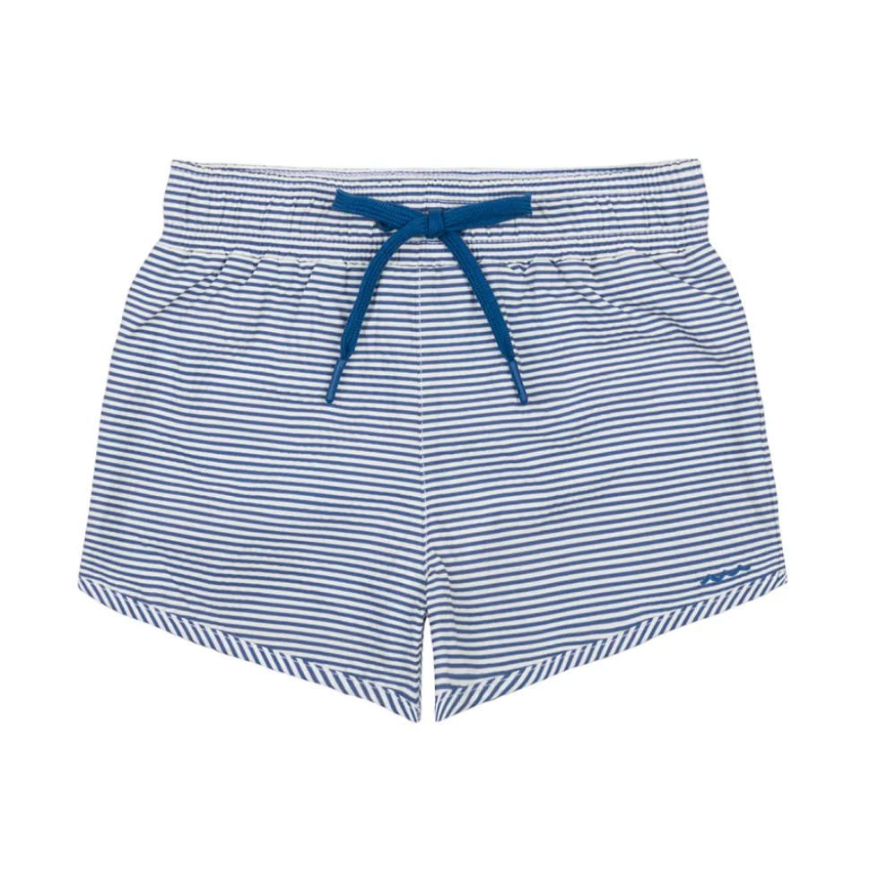 A family favorite for its clean lines and simple details, minnow creates pieces that are playful, polished, and thoughtfully designed for long days, sandy toes, and the wonderment of life on the shore. The Boy’s Harbor Stripe Boardie is a fresh take on a signature Minnow style. With its tailored length, stretch liner, and elastic waistband with drawstring, this go-to swim short is made for movement, comfort, and sun-filled days outdoors.