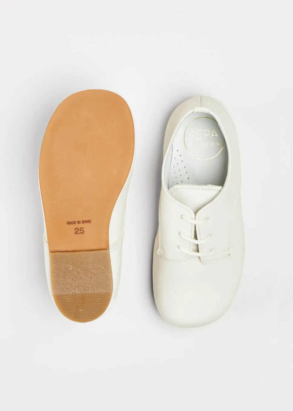 Renowned for exceptional craftsmanship and timeless design, Pepa London creates traditional childrenswear to be treasured and passed down. Each piece reflects the brand’s belief in dressing children like children, combining British style with refined details, comfort, and enduring elegance. The Boy’s Leather Celebration Shoes in White are a classic choice for special occasions, crafted in smooth leather with a lace-up front and softly padded interior for elegant ease.