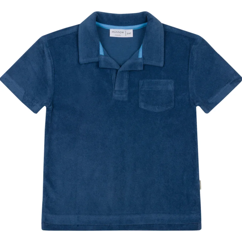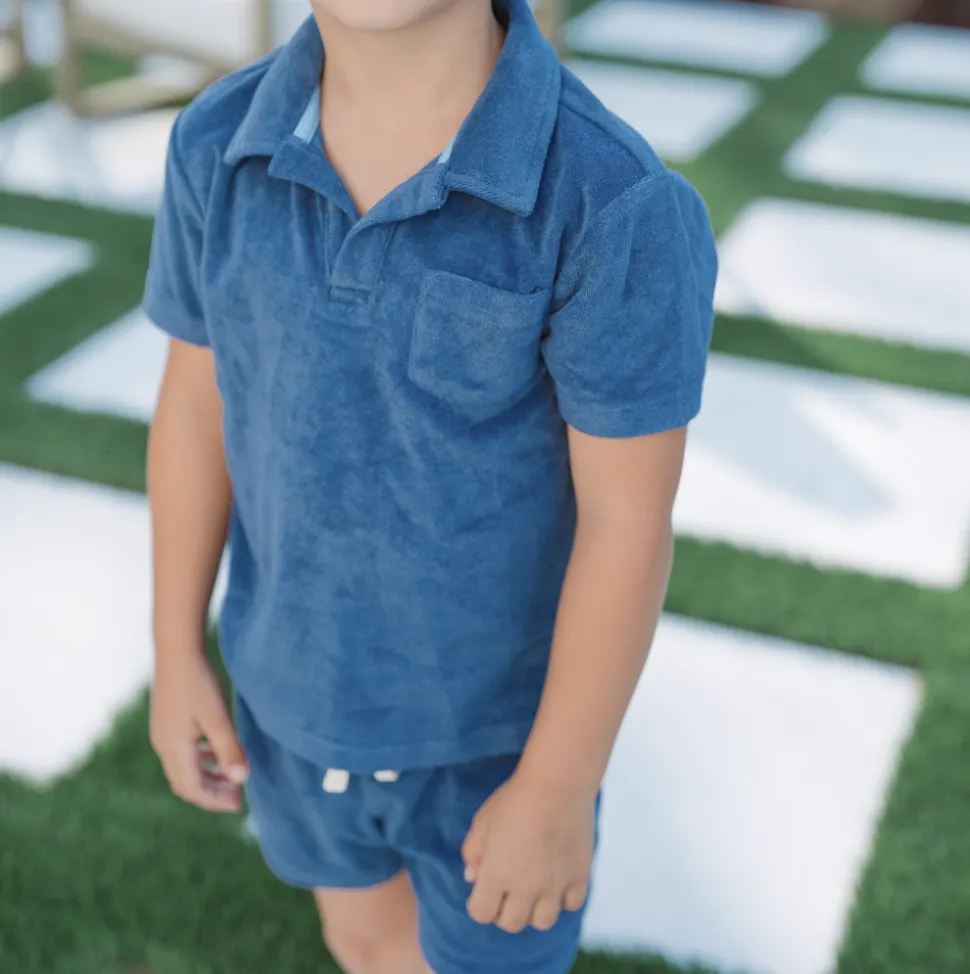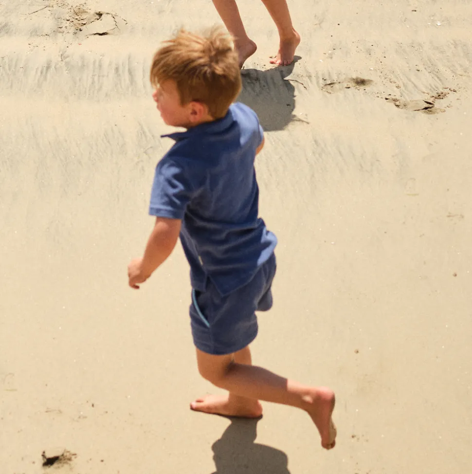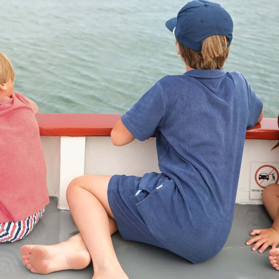 A family favorite for its clean lines and simple details, minnow creates pieces that are playful, polished, and thoughtfully designed for long days, sandy toes, and the wonderment of life on the shore. The Boy’s Newport Navy French Terry Polo is a cozy post-swim essential crafted from premium french terry. With a classic collar and front pocket, this timeless shirt transitions effortlessly from the beach to everyday adventures.