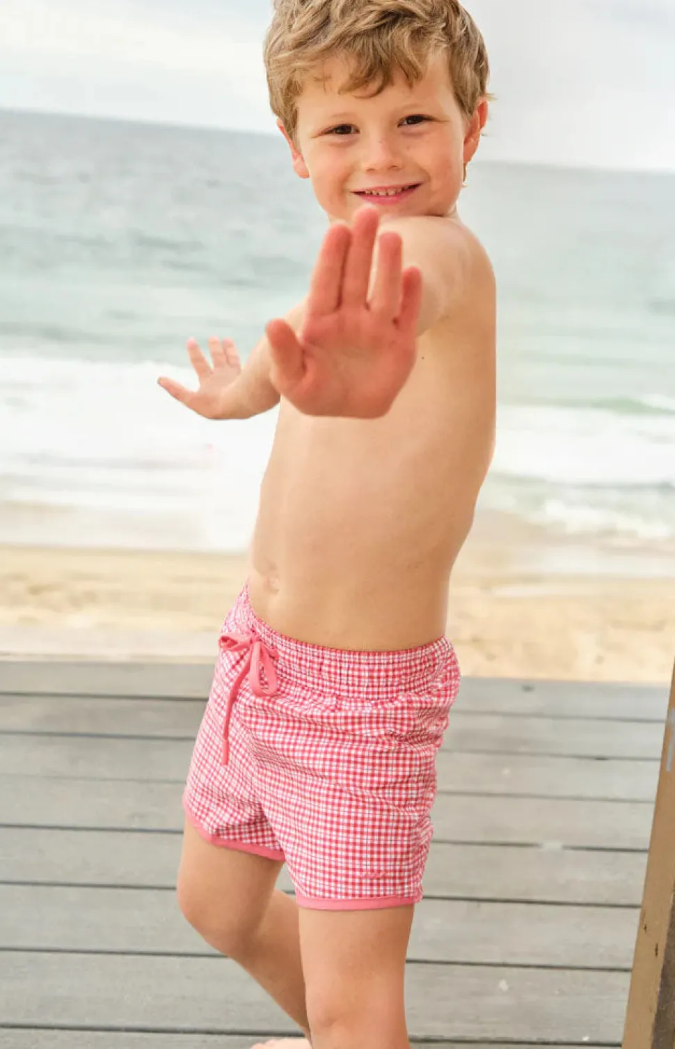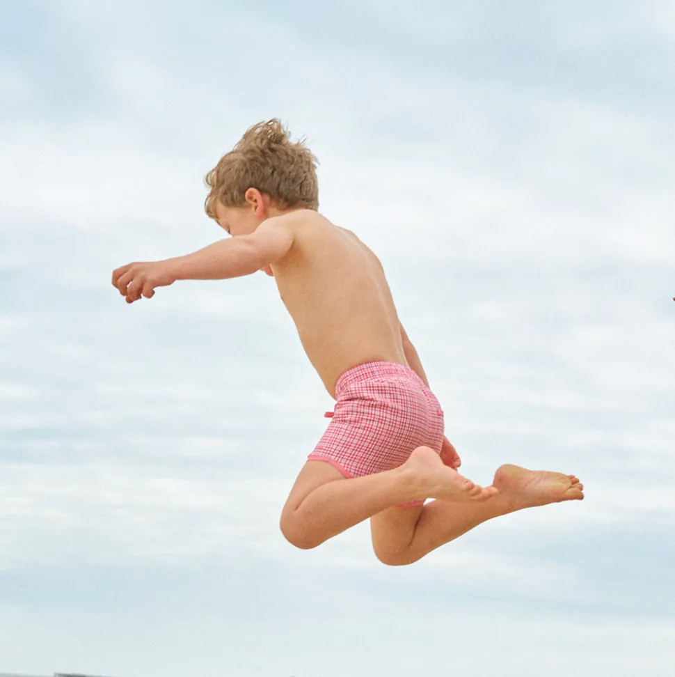A family favorite for its clean lines and simple details, minnow creates pieces that are playful, polished, and thoughtfully designed for long days, sandy toes, and the wonderment of life on the shore. The Boy’s Poppy Gingham Boardie is a best-selling style that balances function and comfort with a tailored look. Designed to hit at just the right length, it features a soft stretch liner for ease of movement, an elastic waistband, and a drawstring cord—ready for every sun-soaked adventure.
