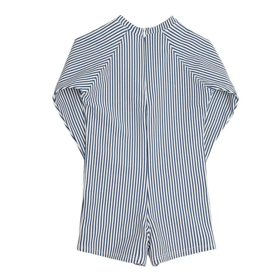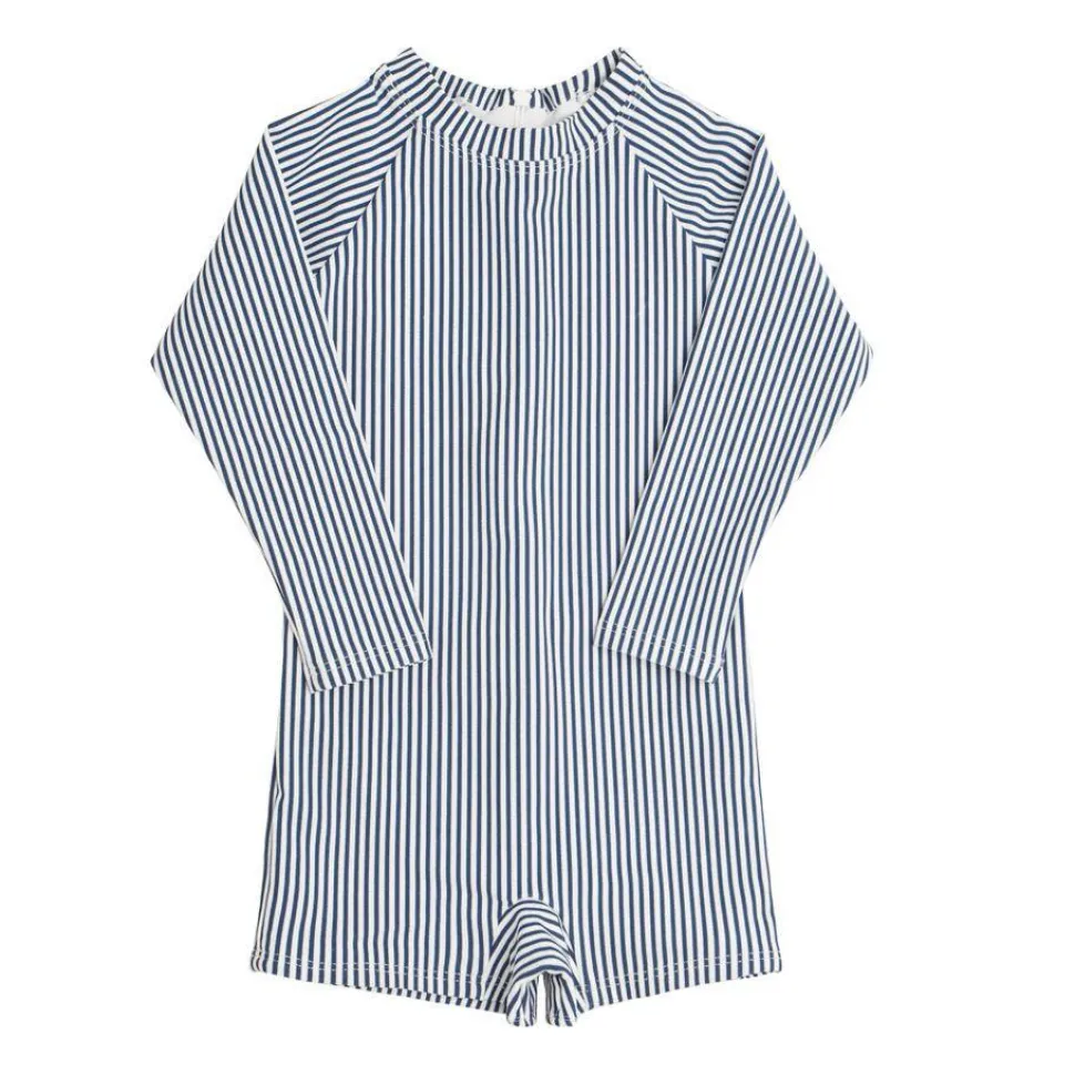 A family favorite for its clean lines and simple details, minnow creates pieces that are playful, polished, and thoughtfully designed for long days, sandy toes, and the wonderment of life on the shore. The Boys Rashguard One-Piece in Navy Stripe offers full UPF 50+ protection. Lined along the torso and legs for maximum coverage and comfort, the raglan arms are unlined and lightweight. The clean invisible zipper allows easy access in and out of the suit.