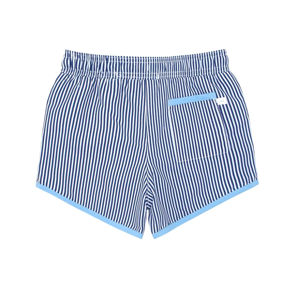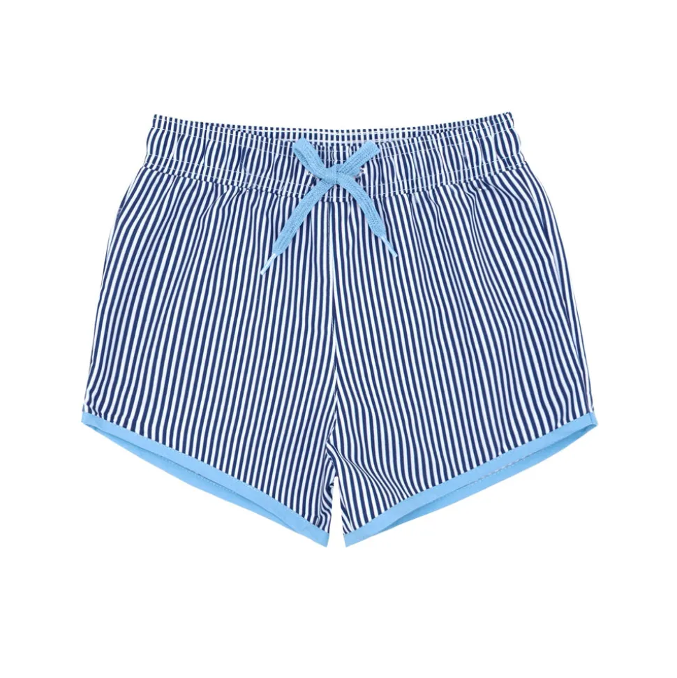 A family favorite for its clean lines and simple details, minnow creates pieces that are playful, polished, and thoughtfully designed for long days, sandy toes, and the wonderment of life on the shore. These boardshorts feature a fun gingham print with drawstring cord. The Boys Stripe Boardie hits at the perfect length for style and functionality. Equipped with an elastic waistband and an inside stretch liner, these boardshorts were meant for play in the water, and out.