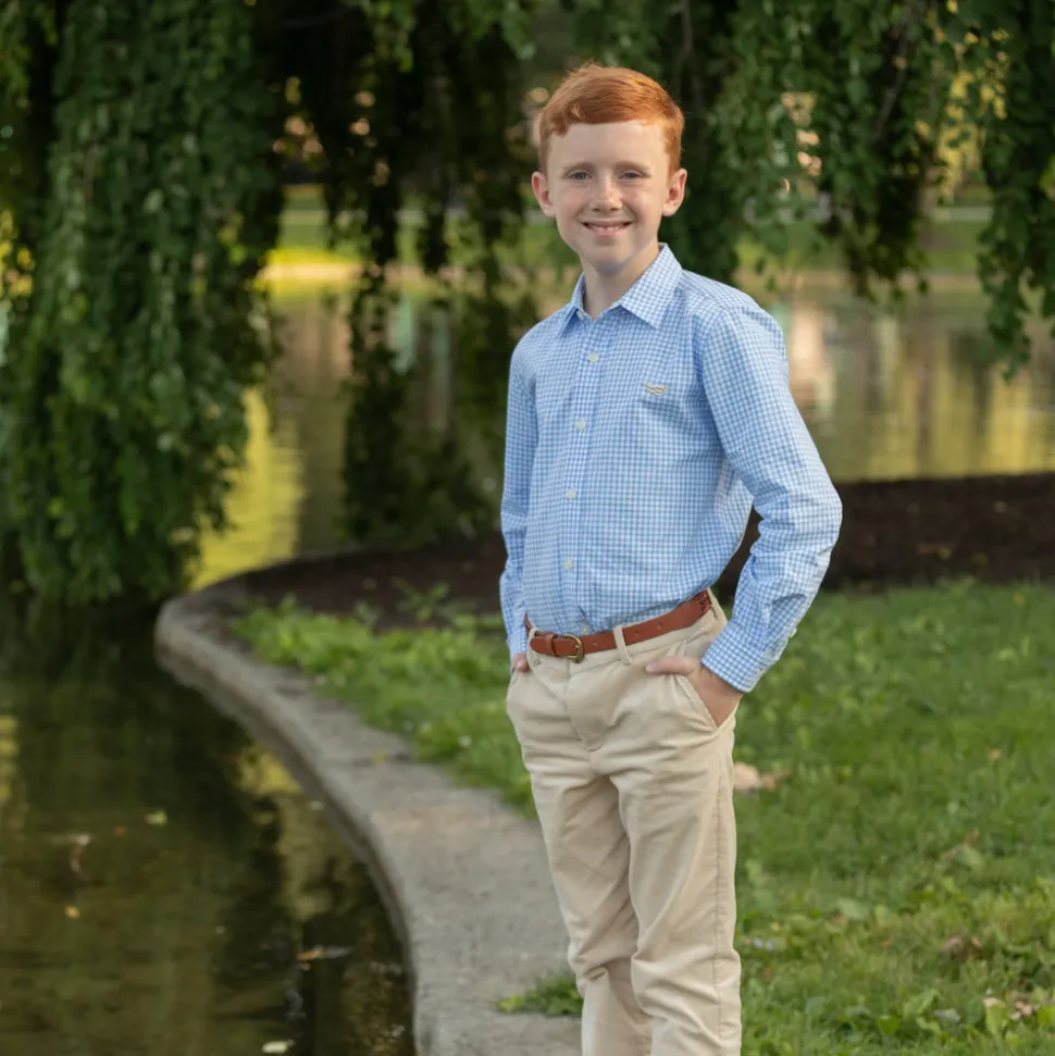 A celebration of the spirit of boyhood, the updated classics from Henry Duvall are curious, imaginative, and sweet. Full of character and playful details, these are easy-to-care-for clothes that families will love. The Bradford Trousers in King’s Way Khaki Corduroy are a timeless wardrobe staple for fall and winter, crafted from ultra-soft fine-wale corduroy and fully lined for comfort. With their polished yet versatile design, these trousers are suited for everything from holiday gatherings to special family outings. Cut in a classic silhouette, they balance comfort with refinement, making them a reliable favorite for repeat wear all season long. Whether dressed up or styled more casually, the Bradford serves as a foundation for elevated autumn looks. Pair with the Bennett Button Down in Charles Street Check for a coordinated ensemble, or mix with sibling styles in matching King’s Way Khaki Corduroy or Charles Street Check for seamless family coordination.