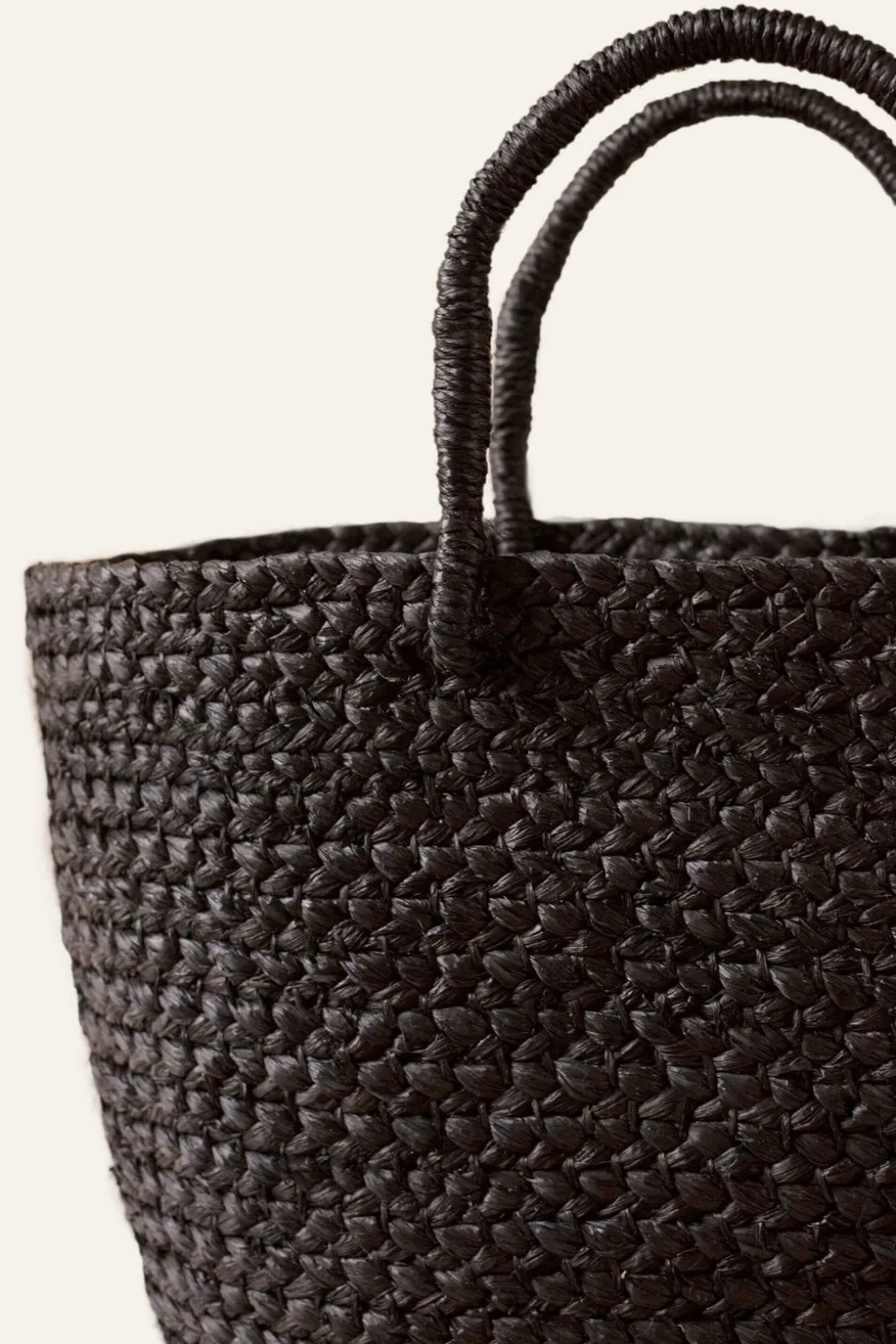 Made from locally sourced natural braided raffia. Black hand-dyed fibers.