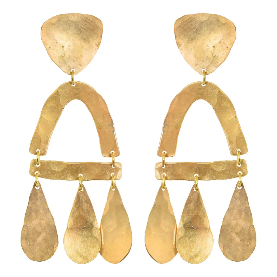 Founded in 2002 by designer Jade Gedeon, We Dream In Colour is powered by a team of women at their North Shore studio in Boston. Each piece of jewelry is assembled by hand, and the company works hard to operate in a socially conscious fashion every step of the way while creating their whimsical, elegant designs. The Brass Castara Earrings feature hand-cut and hammered graphic shapes that create a bold, modern assembly.