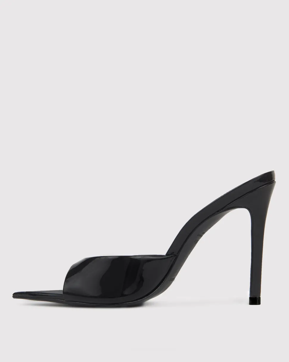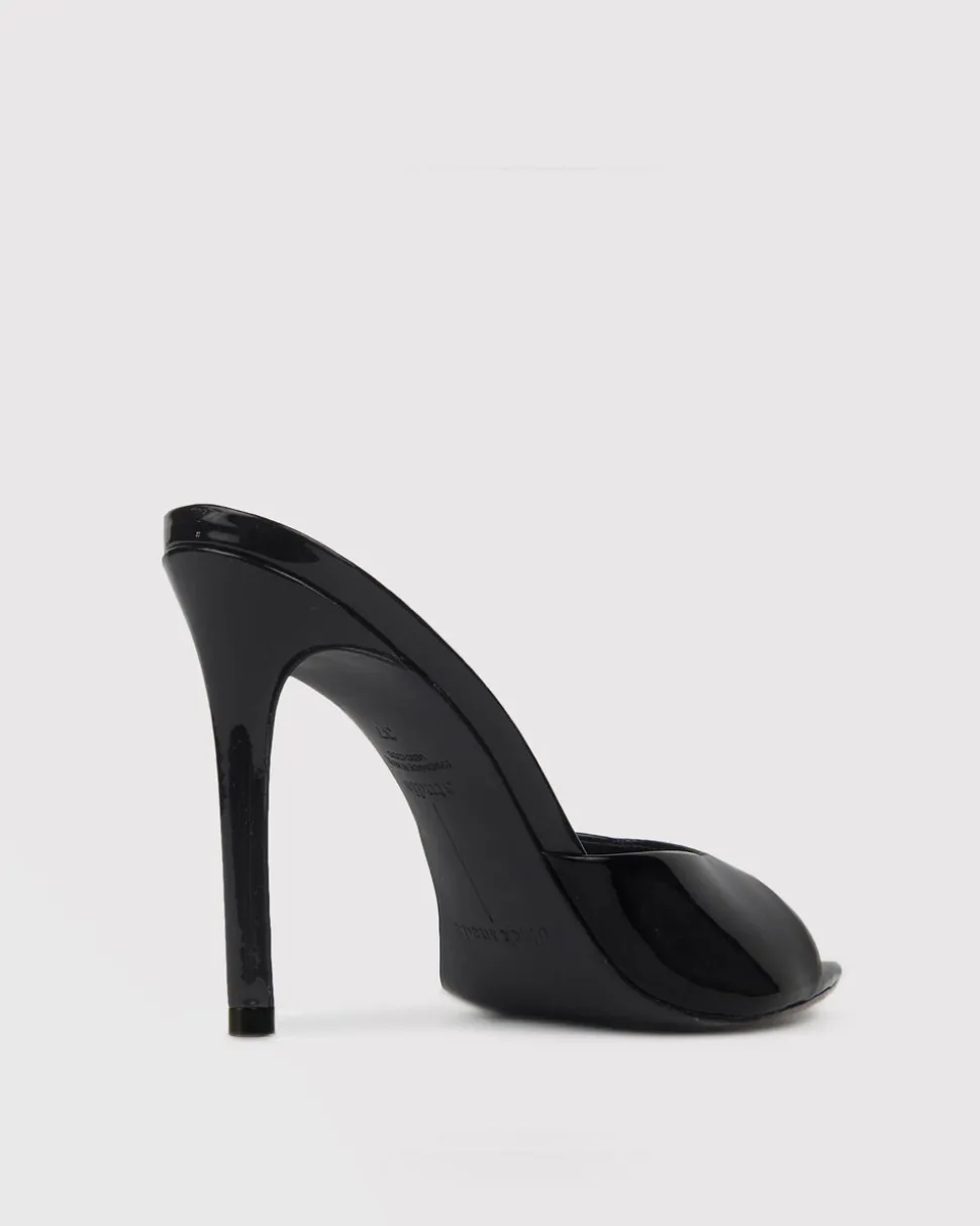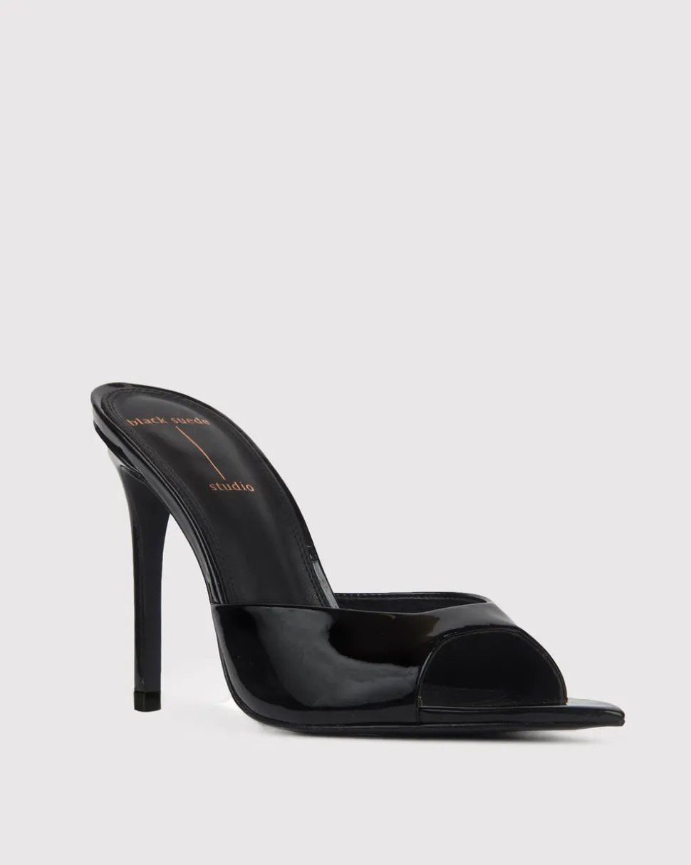 Founded by Kris Avakia in Montréal, Black Suede Studio fuses heritage, passion, and fine craftsmanship to form a line of forward-thinking, luxury footwear. A pointy slipper mule, set on a straight stiletto heel, the Brea in Black Patent Leather is crafted in a smooth patent finished leather for sophistication, and a lot of shine, in every step.