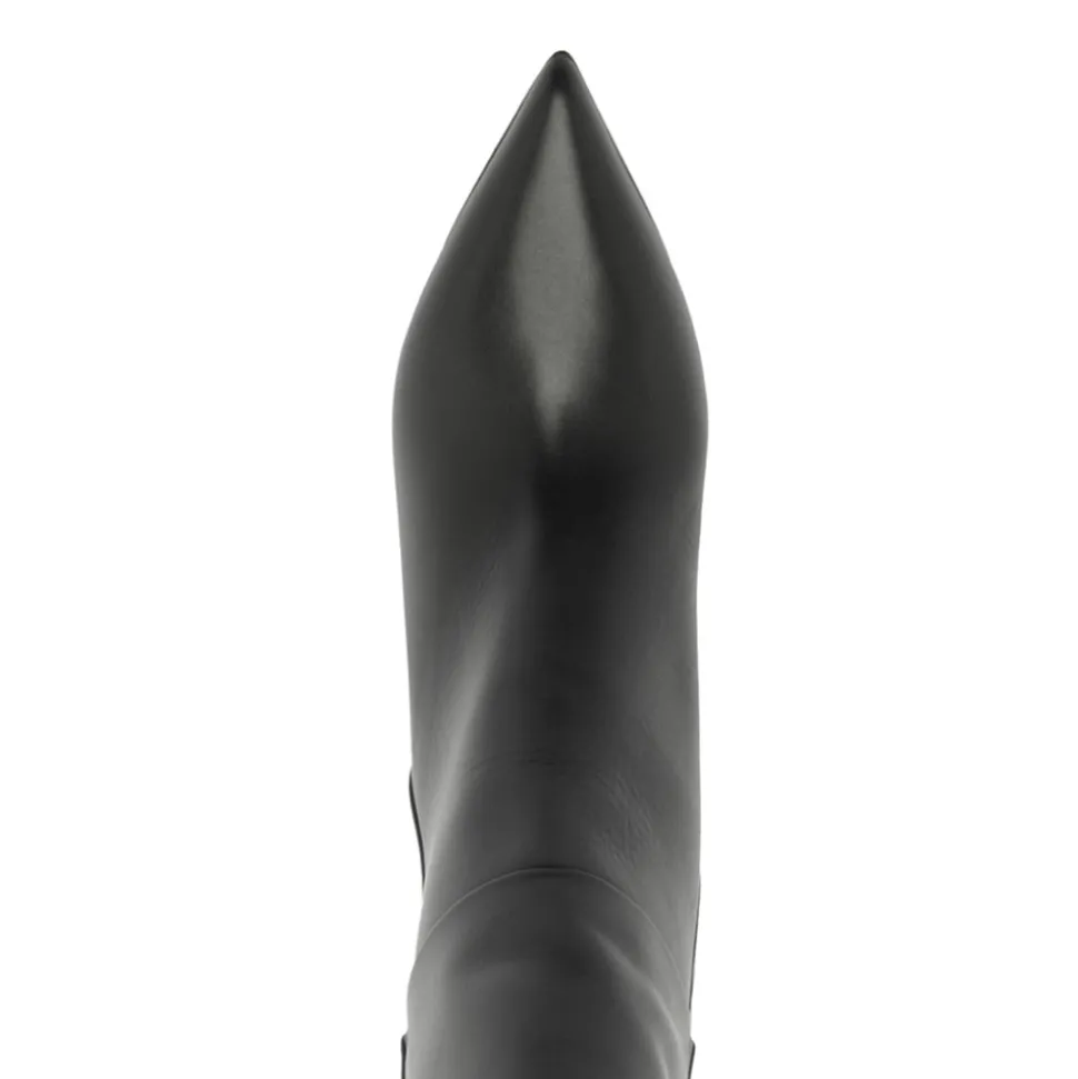 Founded in 2008, Alexandre Birman infuses each of his fine footwear collections with the spirit, sensuality and sophistication of his Brazilian heritage. Beginning with thoughtful drawings, exceptional craftsmanship is the brand’s cornerstone, employing fine artisans, superior materials, and thoughtful design to create timeless, luxurious shoes, style after style. The Brena Boot 60 in Black is a refined essential designed to elevate everyday styling. Crafted in supple leather with a sculptural heel and sleek pointed toe, this ankle boot delivers understated elegance in a timeless silhouette.