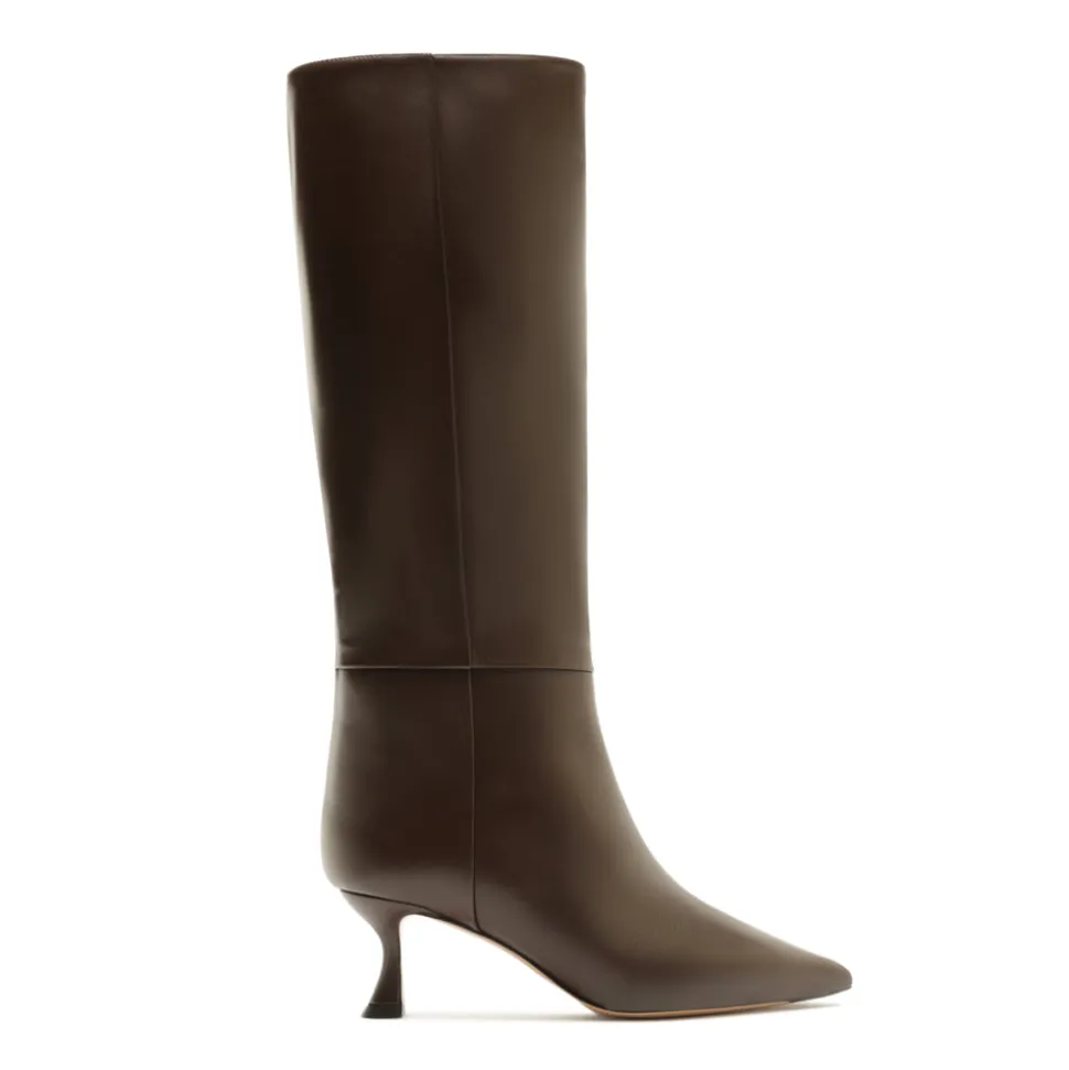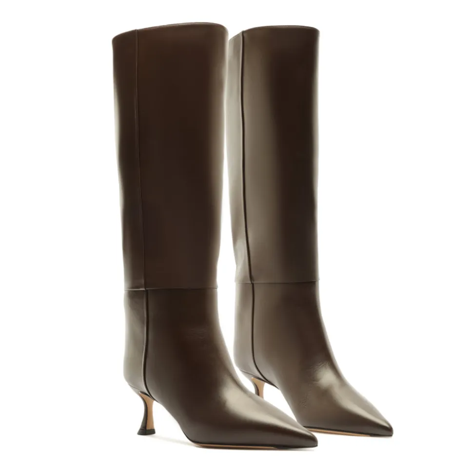 Founded in 2008, Alexandre Birman infuses each of his fine footwear collections with the spirit, sensuality and sophistication of his Brazilian heritage. Beginning with thoughtful drawings, exceptional craftsmanship is the brand’s cornerstone, employing fine artisans, superior materials, and thoughtful design to create timeless, luxurious shoes, style after style. Designed for effortless sophistication, the Brena Boot 60 in Brown features a sculptural heel and pointed toe for a refined silhouette. Crafted in smooth leather with a sleek profile, this ankle boot brings polish and versatility to any day-to-night look.