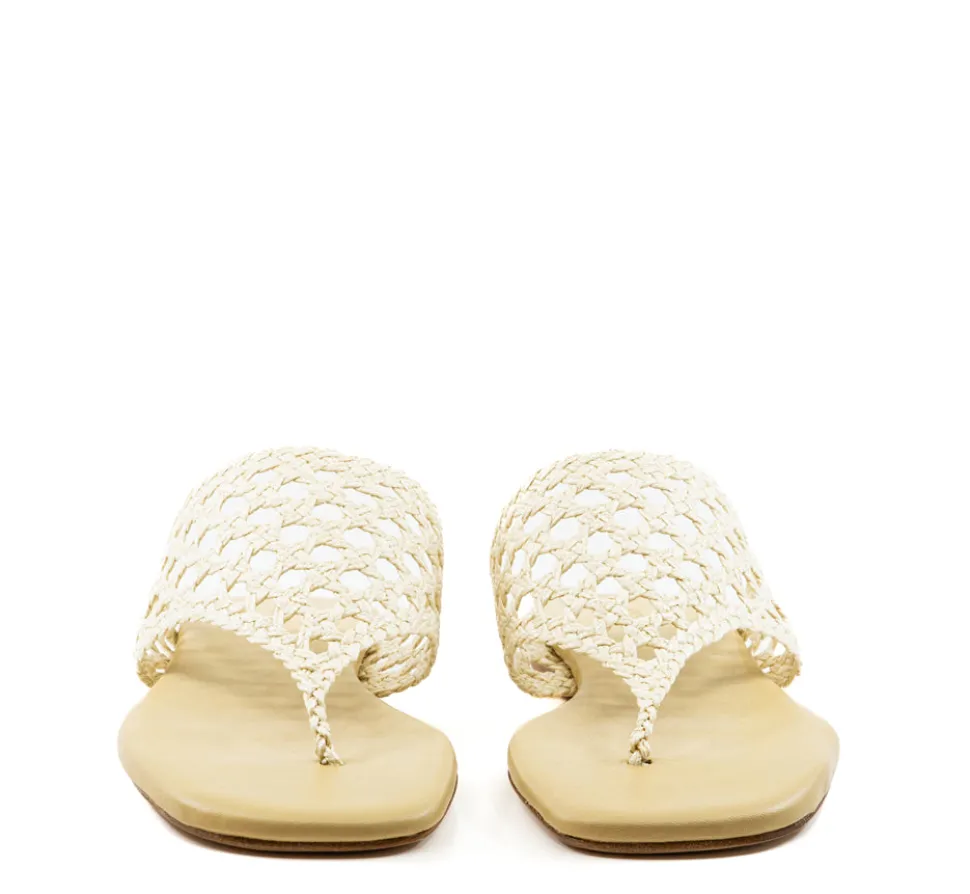 Launched in 2017, Andrea Gomez is driven by a two-fold mission of creating refined, timeless footwear and providing essential resources to Venezuelan children in need. Drawing inspiration from the undeniable beauty of Venezuela, the Andrea Gomez collection is inspired by, thoughtfully designed by and created for women. Made from woven natural raffia, this thong-style sandal features a square toe for a modern touch.