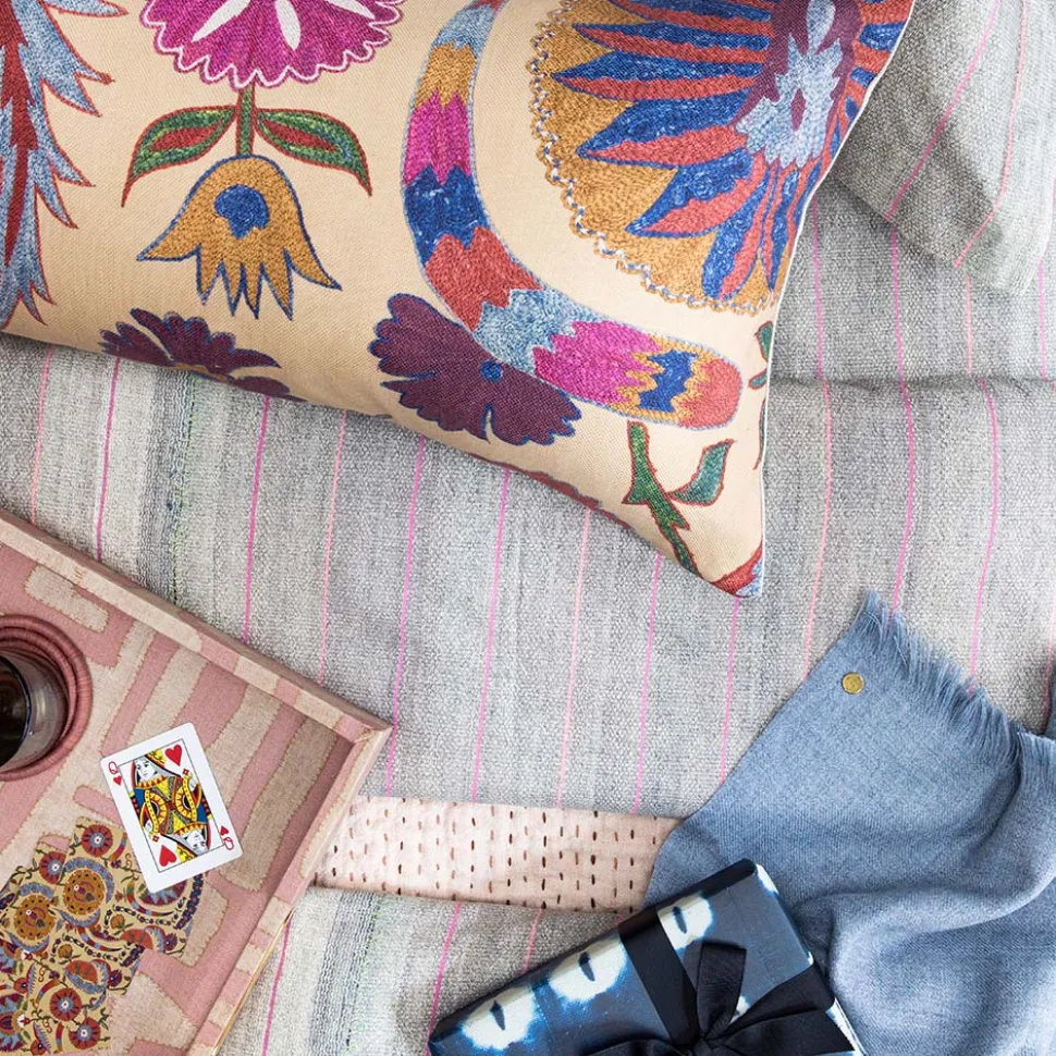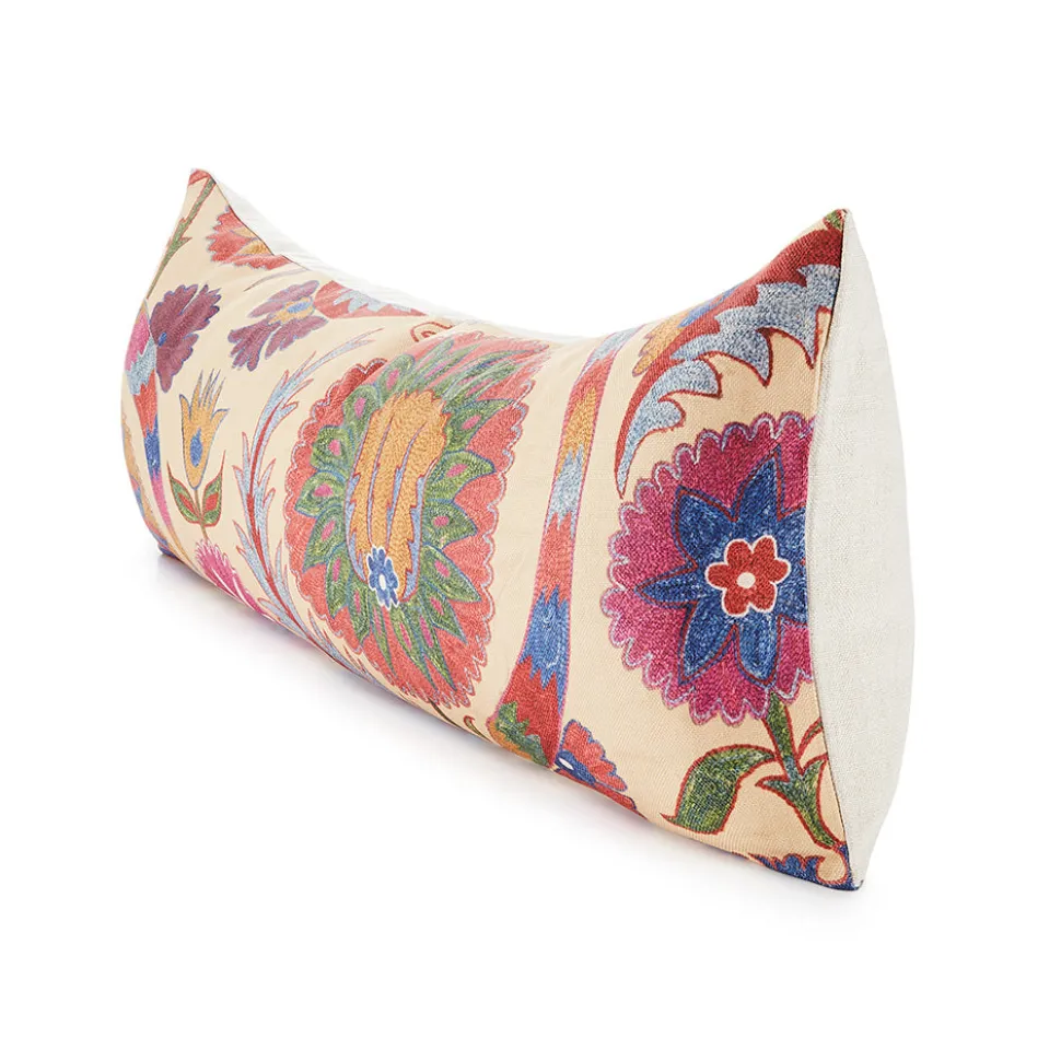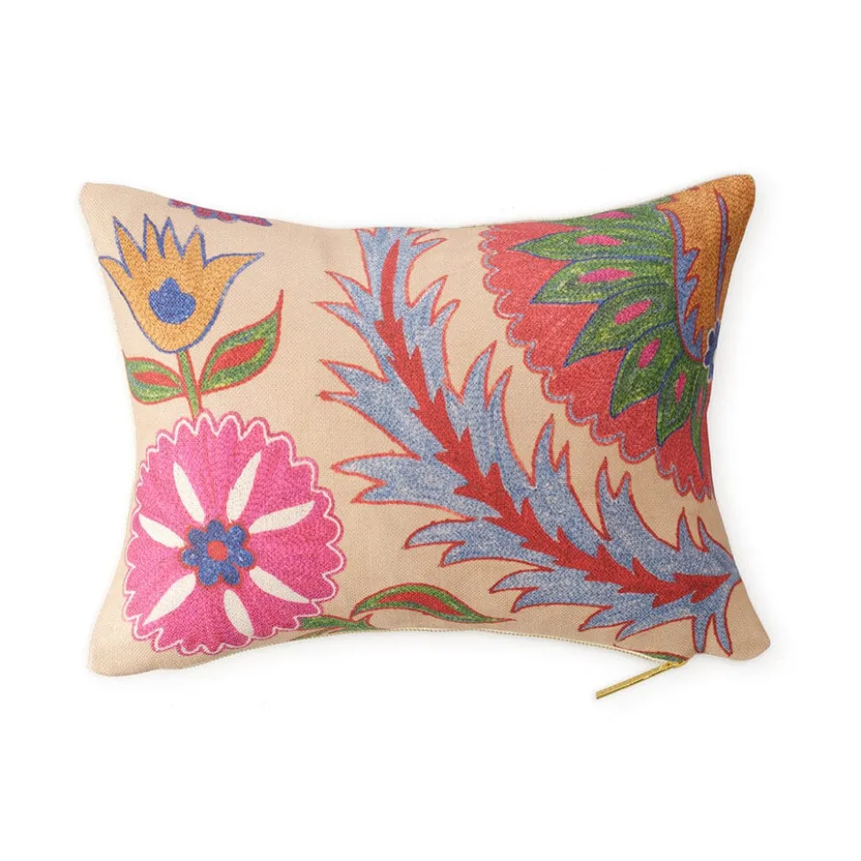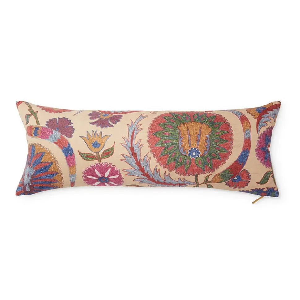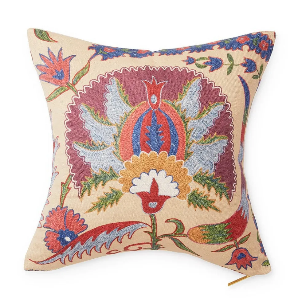 Citing unique origins and ethical sourcing, St. Frank produces contemporary, vintage, and printed homewares that carry with them the cultural history of the community from which it originates. Working with artisans in under-resourced settings, and only the utmost quality materials, St. Frank marries a sophisticated aesthetic with sustainable social change. Inspired by suzani embroidery, a classic Central Asian textile characterized by flowers and meandering vines, the Bright Botanical Suzani Pillow is an elegant, inspiring addition to any room.