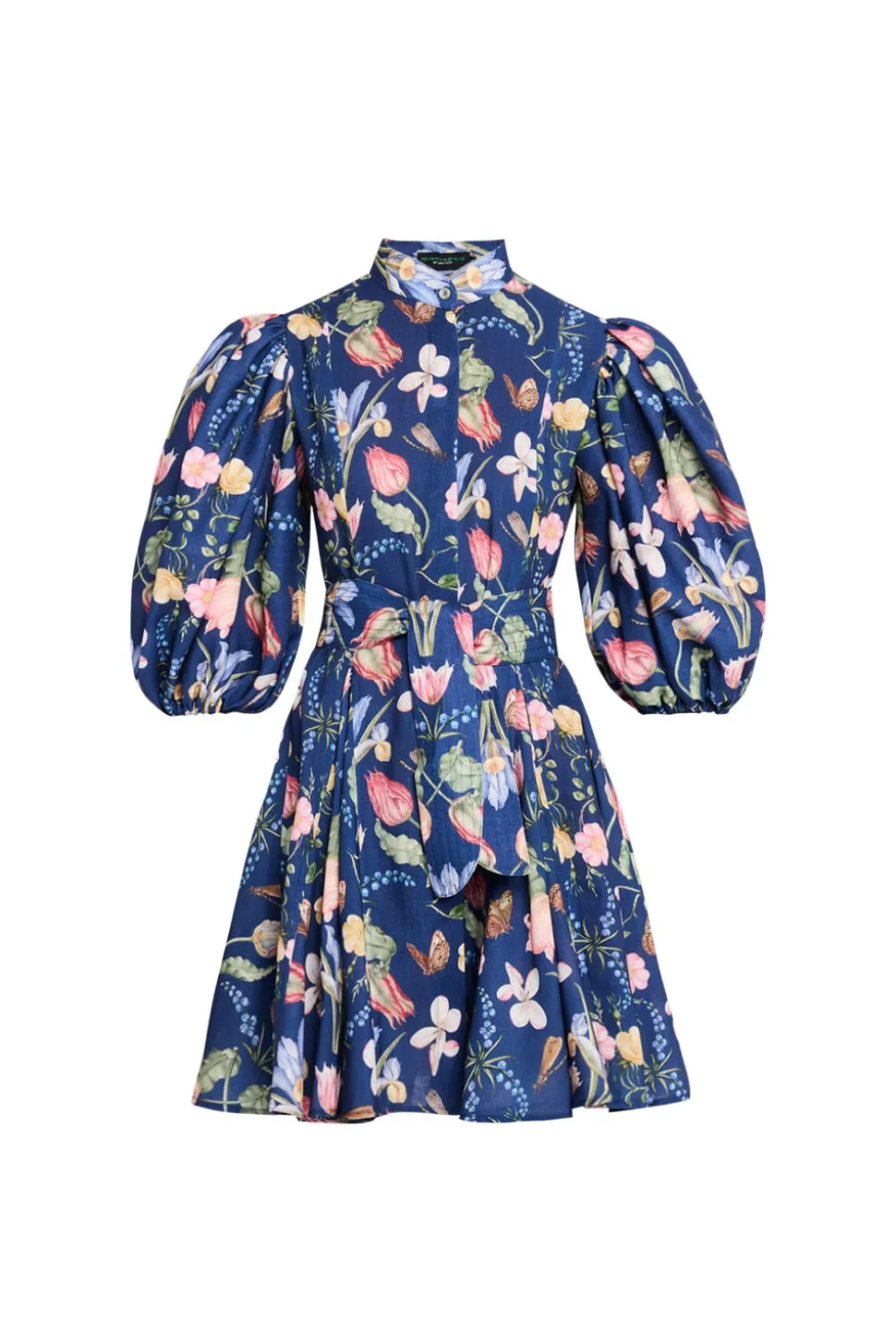 Founded by Daniela Panaro, No Pise La Grama, which translates to “don’t step on the grass,” is a Venezuelan fashion brand known for its feminine, timeless designs. As the name suggests, there’s a strong connection to nature through the elevated yet laid-back aesthetic inspired by travel and the art of traditional craftsmanship. The Bromelia Mini Dress in Tulipán Navy Print brings refined charm to a playful silhouette. Crafted from 100% linen and patterned with delicate tulip florals, this flattering mini offers effortless elegance for warm-weather days and tropical evenings.
