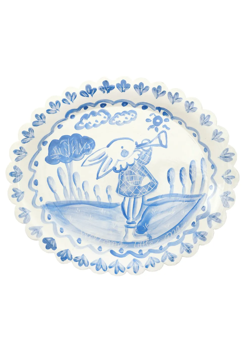 Self-taught artist Tricia Lowenfield crafts one-of-a-kind whimsical pieces that will become family treasures in time. Entirely handmade, the Bunny Baby Bundle is the ultimate gift for a little one. Inside, you will find a bunny plate, handmade bunny doll, laminated placemat, hand-painted chair, bunny trinket box, and, lastly, a hand-painted picture frame.