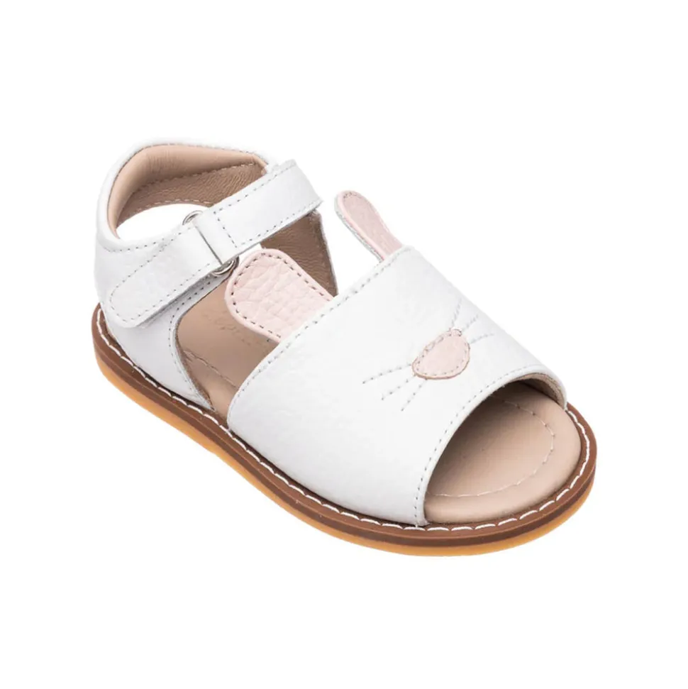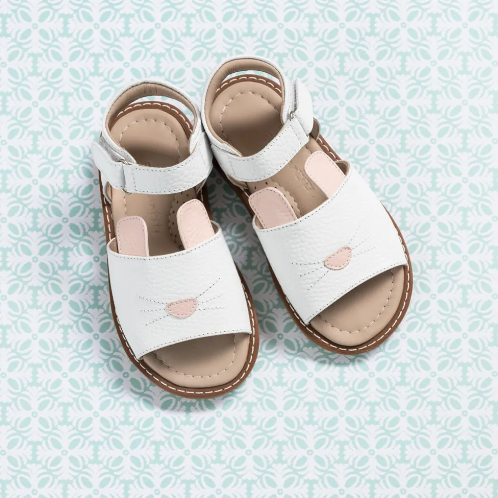 100% leather and rubber sole. Cute leather sandals with bunny ear design. Premium leather upper with breathable lining. Cushioned leather-covered footbed for comfort. Flexible rubber outsole for durability. Easy hook-and-loop closure for convenience. Made in Peru.