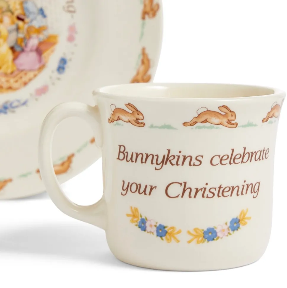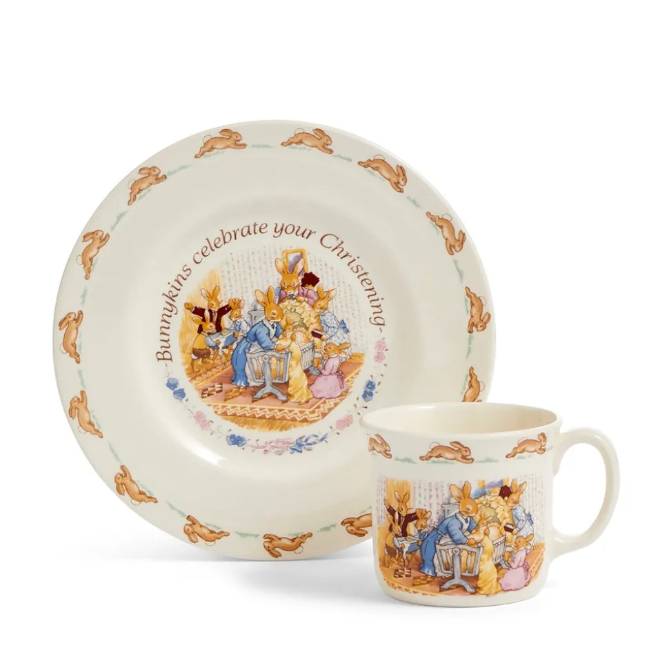 For over 200 years, London’s Royal Doulton has used the greatest care, expertise and innovation to craft fine glass and tableware, earning international recognition, and two royal warrants along the way. Embracing both tradition and modernity, these versatile items are fit for everyday use, and for a king and queen. A favorite since 1934, the Bunnykins series is decorated with a delightfully domestic rabbit motif that your little one will love. The Bunnykins Christening Plate & Mug, 2-Piece Set is the right size for little hands, and is both dishwasher and microwave-safe, making prep and clean up easy as can be. Featuring a cute christening scene, it’s an ideal gift for the special day.