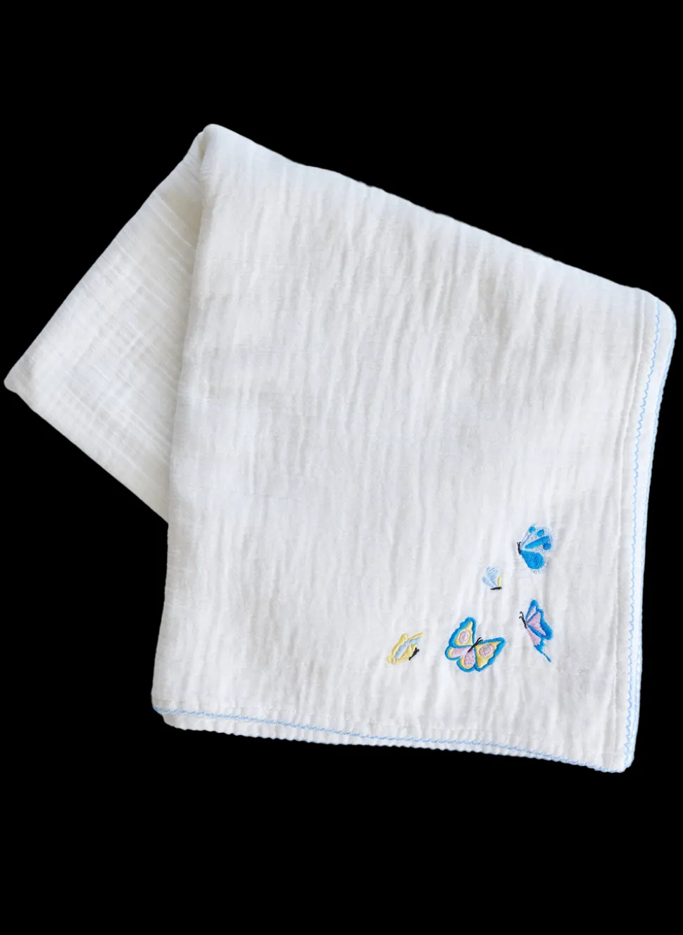 Created to be timeless, sustainable and whimsical, Timo & Violet creates luxury bedding and bath linens for your littlest ones. Looking outward from the very beginning, they develop soft fabrics that are safe for both babies’ skin and the earth, decorating them with artwork by women from around the globe. Crafted in deliciously soft organic cotton, the Butterfly Embroidered Shawl Blanket is as versatile as can be. Use it to swaddle your beloved newborn, or to cover them and keep them cozy as they grow: in the stroller, the car, or the crib. Make it even more special with a monogram.