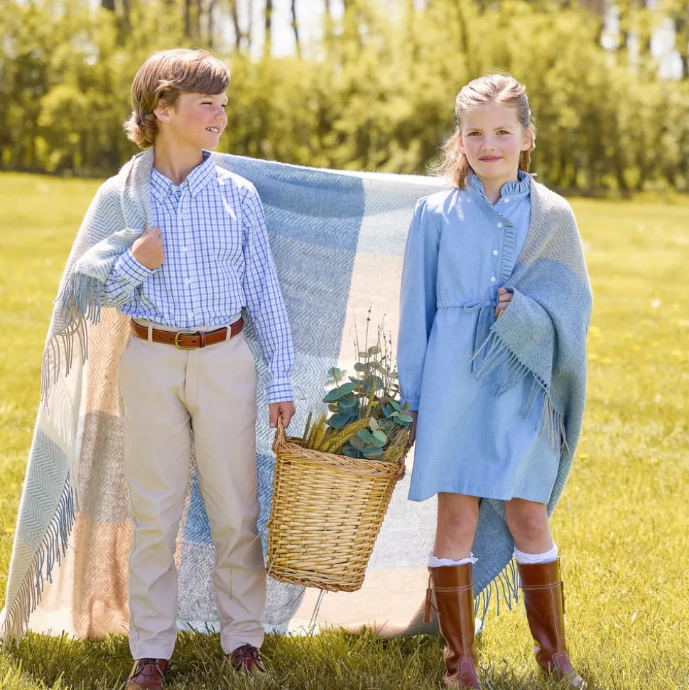 Shannon Latham founded Little English in 2004 with the belief that children should always be well-dressed. Employing hand-smocking, hand-embroidery, and the very best fabrics, Shannon and her daughter design timeless pieces that will be worn for generations to come. The Woodberry Collection features a handsome plaid in shades of blue, ideal for sibling matches and family photos. The Button Down Shirt in Woodberry Plaid offers a modern fit that boys and parents will appreciate. Complete the look with the Classic Pant in Stone Corduroy for timeless style.
