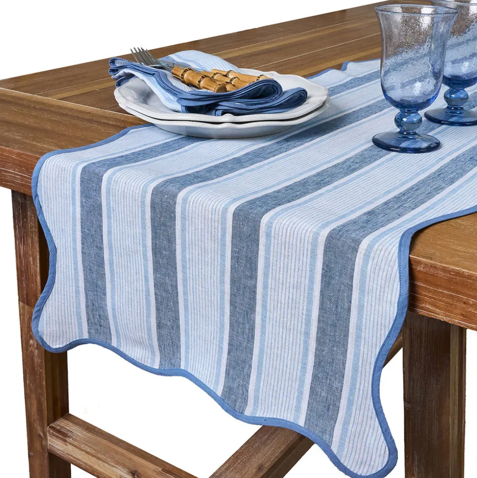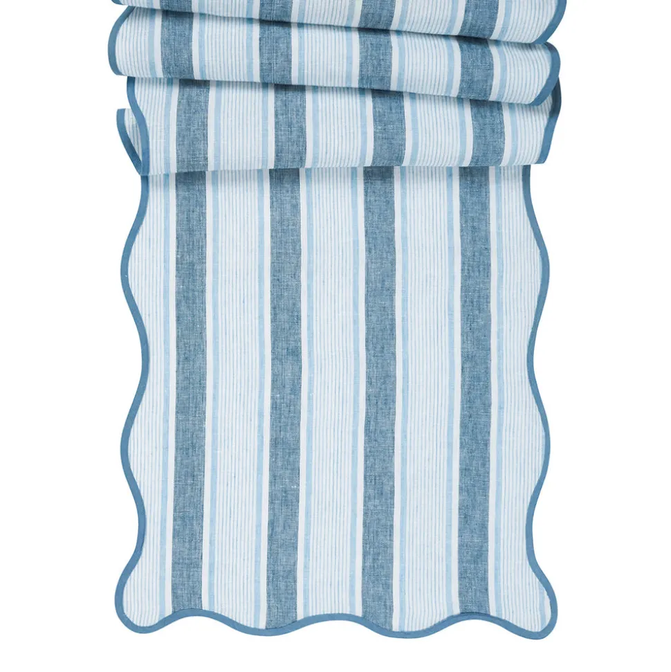 As newlyweds and self-proclaimed romantics, Capucine and David Gooding founded Juliska in 2001 with a small collection of mouth-blown Bohemian glasses. Today, it’s the tableware and home brand every good hostess needs to know. Inspired by idyllic days beside the sea, happy-up any table with the classic Cabana Stripe 18″ x 90″ Table Runner in Ocean. This collection is made of pure, crisp, breezy linen in candy-colored, sun-drenched hues. Beautifully finished with a scalloped trim for a touch of casual elegance.