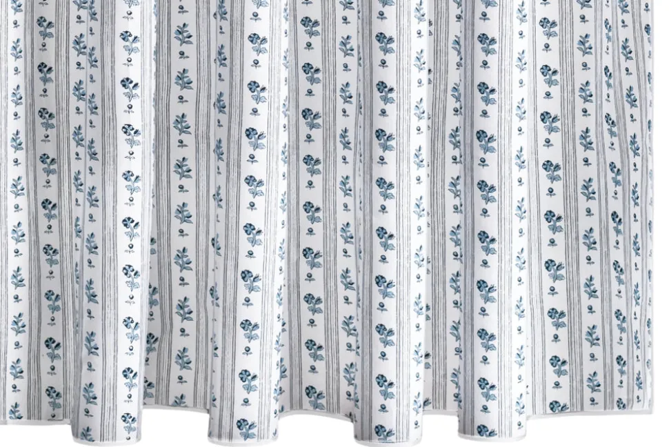For nearly 100 years and three generations, Matouk has handcrafted luxury linens from the world’s finest materials. Their dedicated artisans in Fall River, Massachusetts are committed to creating the highest quality, most-loved bed, bath, and table linens for your home. The Cabanon Stripe Shower Curtain is a Matouk Schumacher print whose delicate stripes and small-scale florals evoke a French Provincial sensibility. Crafted from crisp percale, its clean finish and refined detailing bring an airy elegance to any bath design.