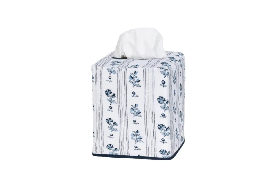 For nearly 100 years and three generations, Matouk has handcrafted luxury linens from the world’s finest materials. Their dedicated artisans in Fall River, Massachusetts are committed to creating the highest quality, most-loved bed, bath, and table linens for your home. The Cabanon Stripe Tissue Box Cover is a charming Matouk Schumacher print whose delicate stripes and florals evoke a French Provincial sensibility. Crafted from crisp percale, its refined detailing brings an airy elegance to any home design.