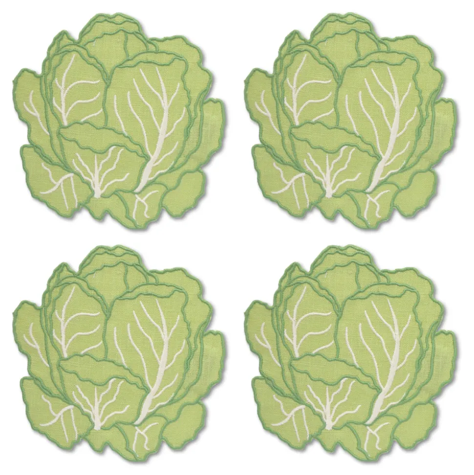 Founded by New York-based caterer, culinary influencer, and designer Stephanie Nass, Chefanie dinnerware brings people together over food and art. The culinary-driven lifestyle brand specializes in fanciful designs from tableware to home accessories. The Cabbage Cocktail Napkins is the must-have set for any vegetarian, aspiring vegetarian, or someone who appreciates a hearty green meal. Pairs oh-so-well with the rest of the cabbageware collection.