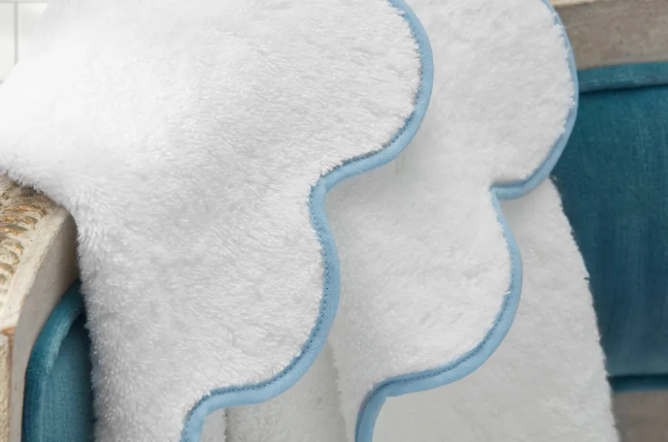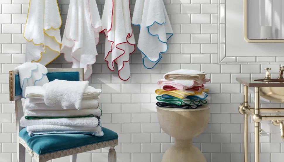 For nearly 100 years and three generations, Matouk has handcrafted luxury linens from the world’s finest materials. Their dedicated artisans in Fall River, Massachusetts are committed to creating the highest quality, most-loved bed, bath, and table linens for your home. Adding comfort and cleanliness, the Cairo Scallop Bath Collection is charming, carefree, and crafted from exquisitely soft cotton. We love the gently piped borders, for a pop of color and some added texture.